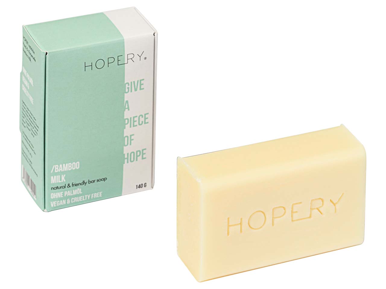 Die Produkte von HOPERY entstehen in traditioneller, liebevoller Handarbeit in Würzburg. Die 100 % veganen Rezepturen stammen aus über 30 Jahren Familientradition. Es werden ausschließlich naturreine Pflanzenstoffe wie Pflanzenextrakte, pflanzliche Öle und Wachse sowie ätherische Öle verwendet. Parabene, Silikone, synthetische Duft- und Farbstoffe, Paraffine, Mikroplastik oder Inhaltsstoffe aus der Erdölindustrie kommen nicht zum Einsatz. In der Herstellung wird auch bewusst auf Palmöl verzichtet. Das Öl wird aus Ölpalmen gewonnen, die nur in ständig feuchtem Regenwaldklima gedeihen. Die Palmen werden auf riesigen Plantagen angebaut, für die Regenwälder abgeholzt werden. Das hat negative Folgen für das Klima, denn Regenwälder binden CO2. Zudem nimmt die Abholzung des Regenwalds Lebewesen wie Orang-Utans ihren Lebensraum weg.