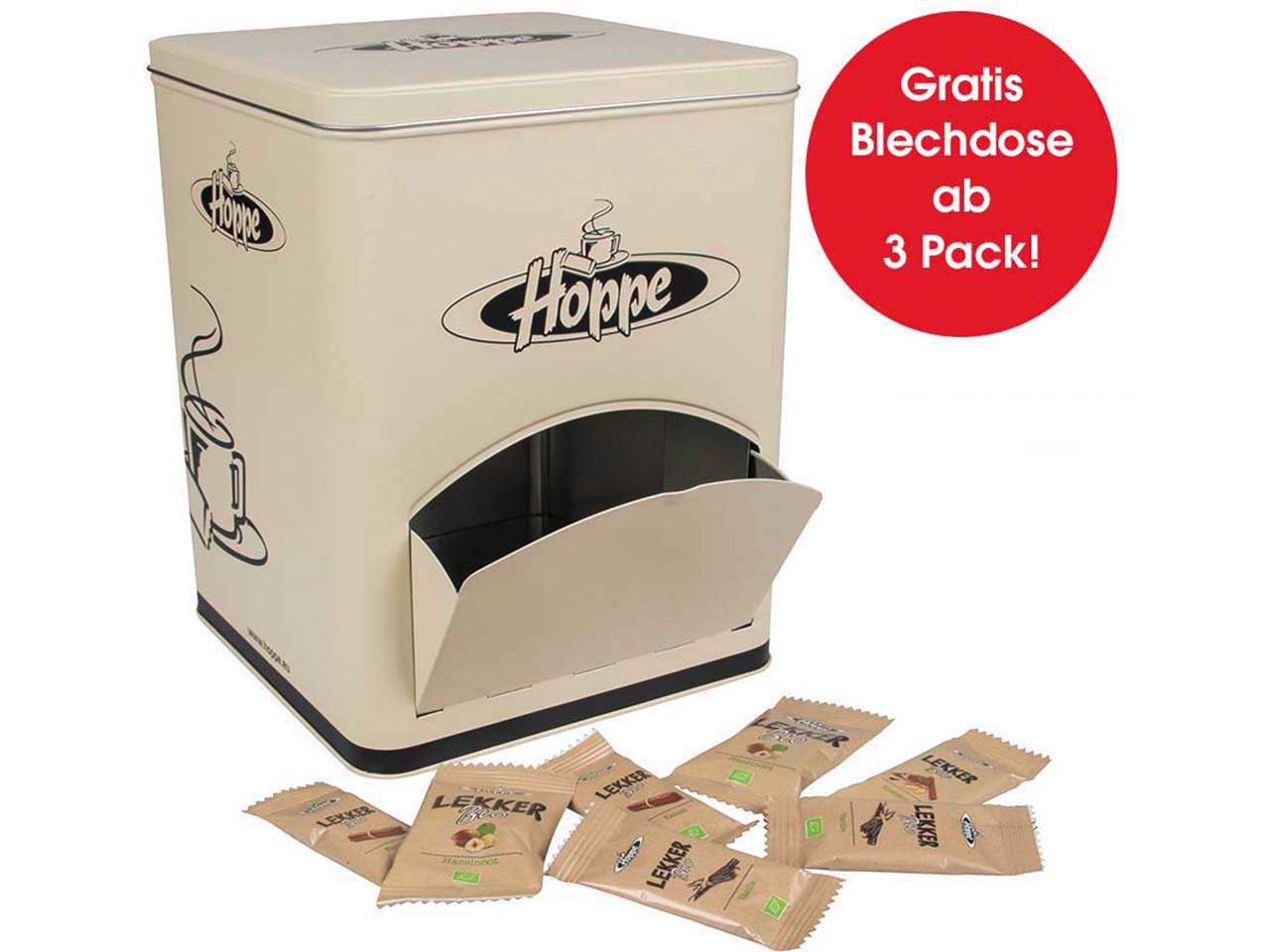 Bei Bestellungen ab 3 Packungen wird eine hübsche Blechdose zur Aufbewahrung der Kekse mitgeliefert, die sich hervorragend als Spender eignet.