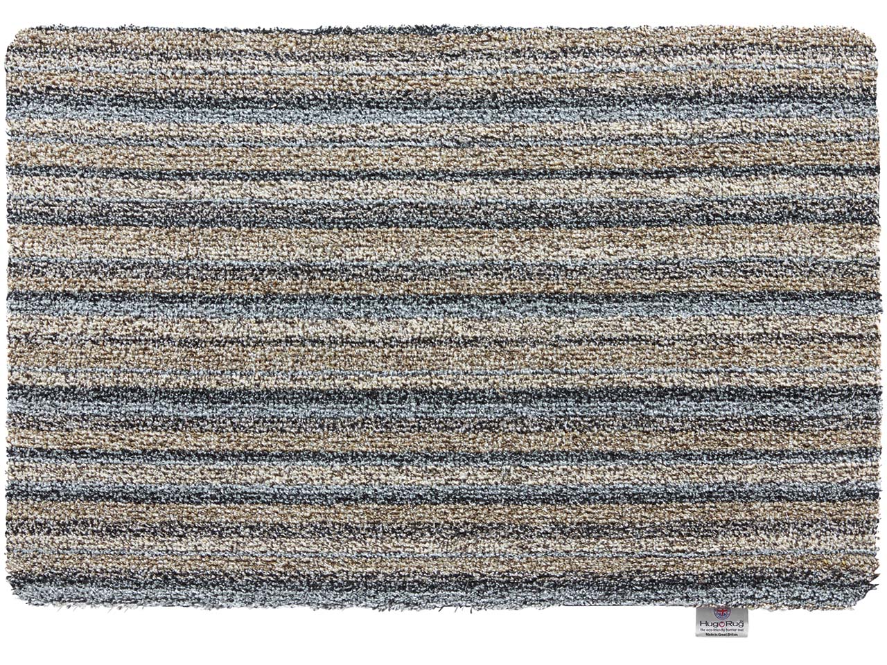 Ökologische Herstellung aus 100 % Recyclingmaterialien und exzellente Saugfähigkeit sind die Eckdaten der HugRug Fußmatten. Staub, Dreck und Feuchtigkeit werden sehr gut aufgenommen, sodass diese nicht im Inneren des Hauses landen. Der Fußabtreter kann das 4-fache seines Gewichts an Flüssigkeit aufnehmen, ohne dabei etwas an den Boden abzugeben. Dennoch fühlt sich die Matte so weich an wie ein Teppich! Dadurch eignet sie sich ideal für den Eingangsbereich in Haus und Wohnung. Die Unterseite, die aus recycelten Gummireifen besteht, ist außerordentlich rutschfest. Selbst herumrennende Kinder oder Haustiere machen der antistatischen Schmutzmatte nichts aus und sie bleibt dank der sehr rutschfesten Qualität liegen. Für die Borsten wurde Baumwolle wiederverwertet und mit 10 % Mikrofasern aus recycelten Kunststoffflaschen verarbeitet. B 75 x T 50 cm.