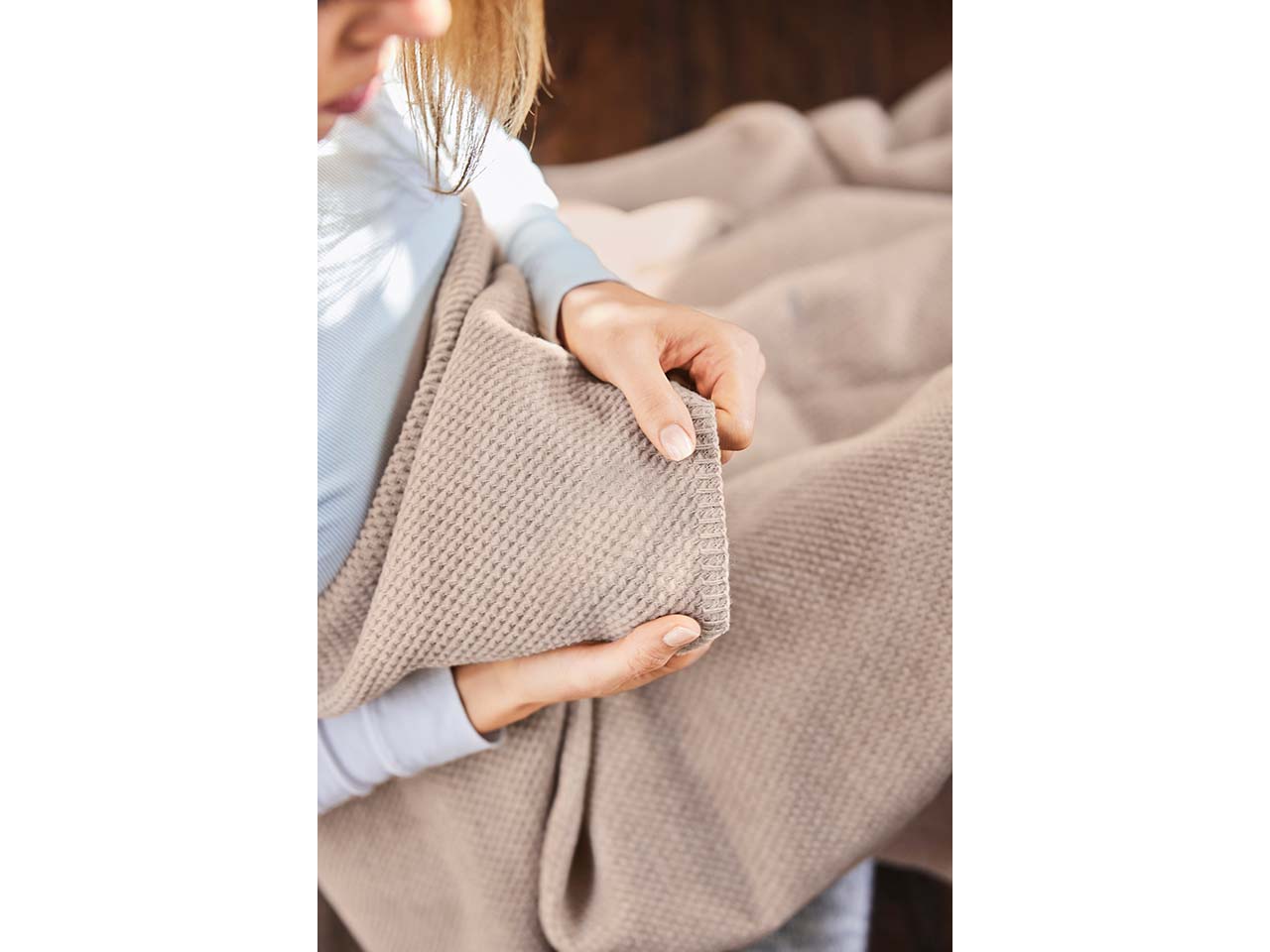 Kälte hat hier keine Chance: Die Wohndecke mit gewebter Struktur ist ein zeitloses Accessoire, das nirgendwo fehlen darf. Weiche, GOTS-zertifizierte Bio-Baumwolle sorgt für den richtigen Kuschelfaktor und angenehme Wärme. Die Decke ist anschmiegsam und ideal, wenn es in Frühjahr oder Sommer doch mal etwas kühler ist. Perfekt, um sich abends auf der Couch einzukuscheln und es sich gemütlich zu machen! Die Decke ist in verschiedenen Farben und zwei Größen erhältlich.