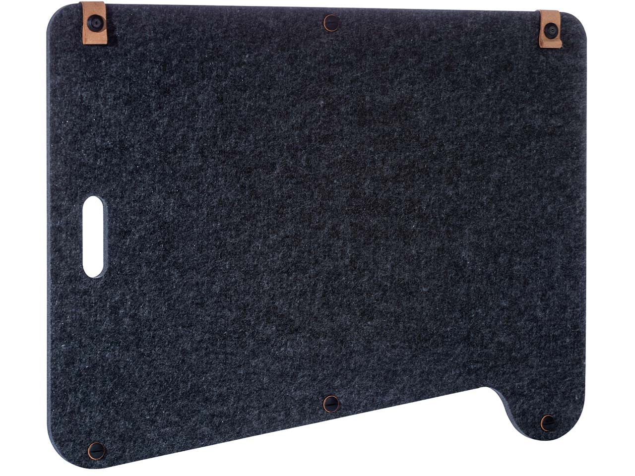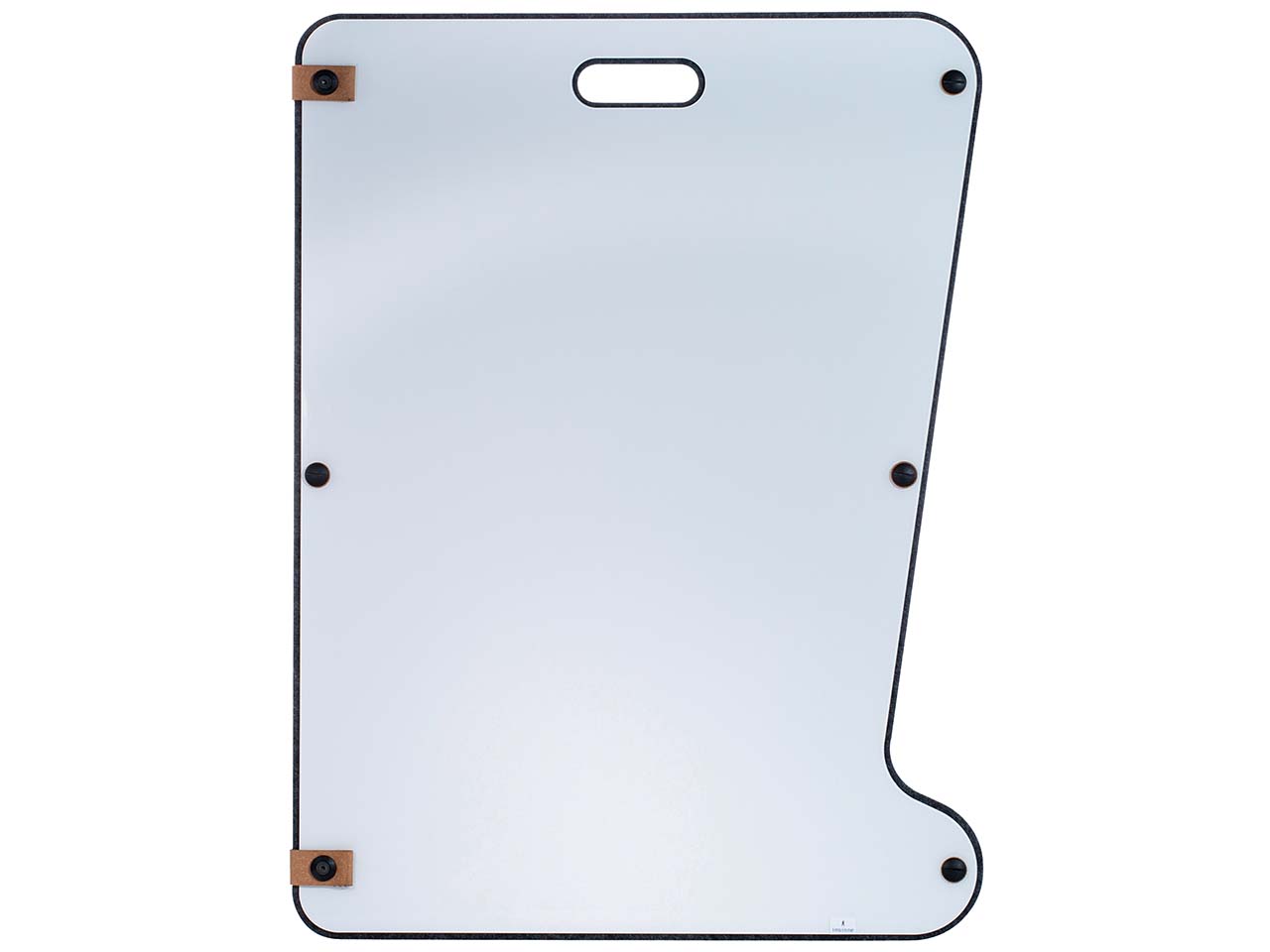Dieses moderne Whiteboard ist in Zusammenarbeit mit Rollstuhlfahrenden entwickelt. Deswegen eignet es sich besonders für die Arbeit im Sitzen. Die Tafel wird auf den Schoß gelegt und bietet viel Platz, um Skizzen, Gedanken, Aufgaben, etc. zu notieren. Die Größe ist auch ideal, um Präsentationen vor Gruppen und Klassen zu halten. Die gesammelten Ideen lassen sich damit hervorragend vorstellen und präsentieren. Das Produkt bietet zwei unterschiedliche Seiten: Die Vorderseite dient als beschreib- und abwischbares Whiteboard, die Rückseite besteht aus PET-Filz und eignet sich als Pinnwand oder Unterlage. Die beständigen, flexiblen Schlaufen aus recyceltem Schuhleder verhindern ein Wegrutschen und dienen gleichzeitig auch als Klammer, um Papiere, Skizzen oder Broschüren zu halten. B 58 x T 3 x H 78 cm.