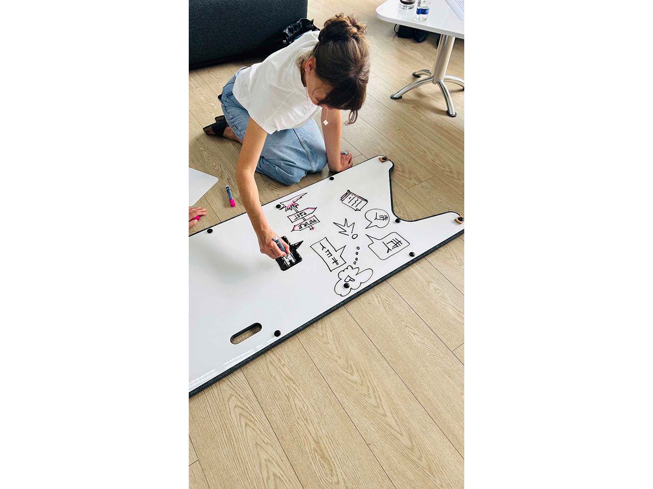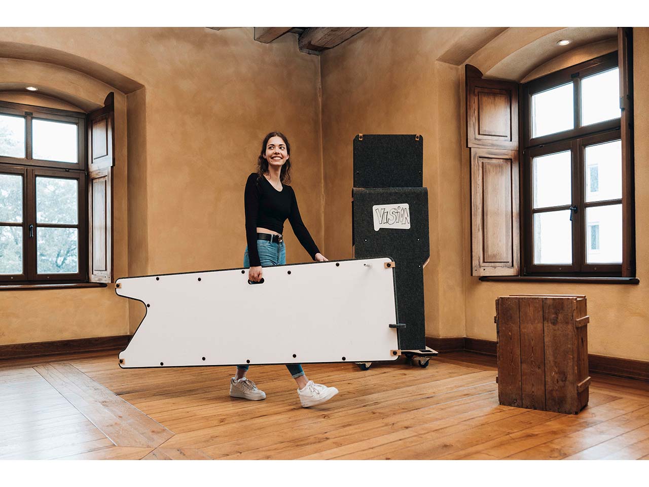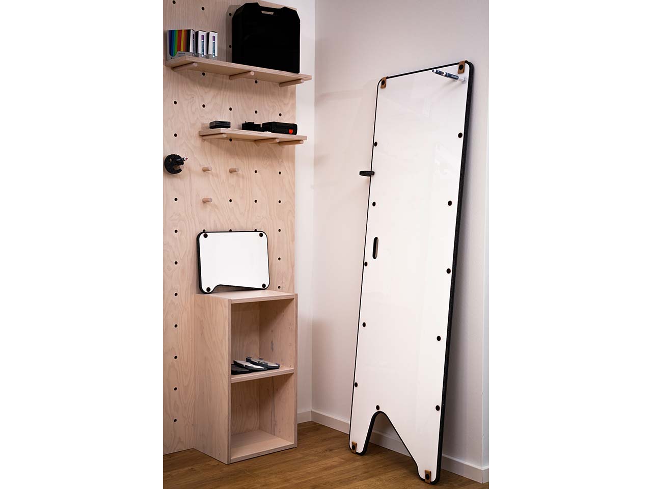 Bei den Produkten der Marke imsinne ist der Nachhaltigkeitsgedanke genauso relevant wie die Funktionalität. Deswegen werden die Artikel so sortenrein wie möglich designt und nach Möglichkeit recycelte oder recyclingfähige Materialien genutzt. Die Whiteboards verfügen über eine Vorderseite aus stabilem, kratzfest gehärtetem Acryl. Dieses Material trägt zur Langlebigkeit des Produkts bei. Für die Rückseite wird Filz aus recycelten PET-Flaschen verwendet. Für Rutschhemmer, Unterlegscheiben, etc. kommen recycelte Schuhreste zum Einsatz. Die verwendeten Materialien stammen aus Deutschland und Österreich, sodass die Lieferketten so kurz wie möglich gehalten werden können.
