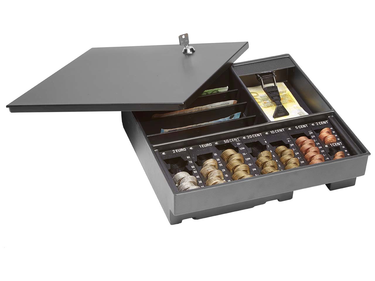 Der INKIESS Kasseneinsatz "7810 RE" verfügt über 7 herausnehmbare Einzelmünzbehälter von 2 € bis 2 + 1 Cent, einem Banknotenfach mit Banknotensicherung sowie 4 Banknoten-Steilfächern. Geben Sie bei der Bestellung bitte immer das Kassenmodell an, sodass der Einsatz individuell optimiert werden kann. Set mit: 1 x Untersatz U 7801, 7 MINIKORD Münzbehälter.