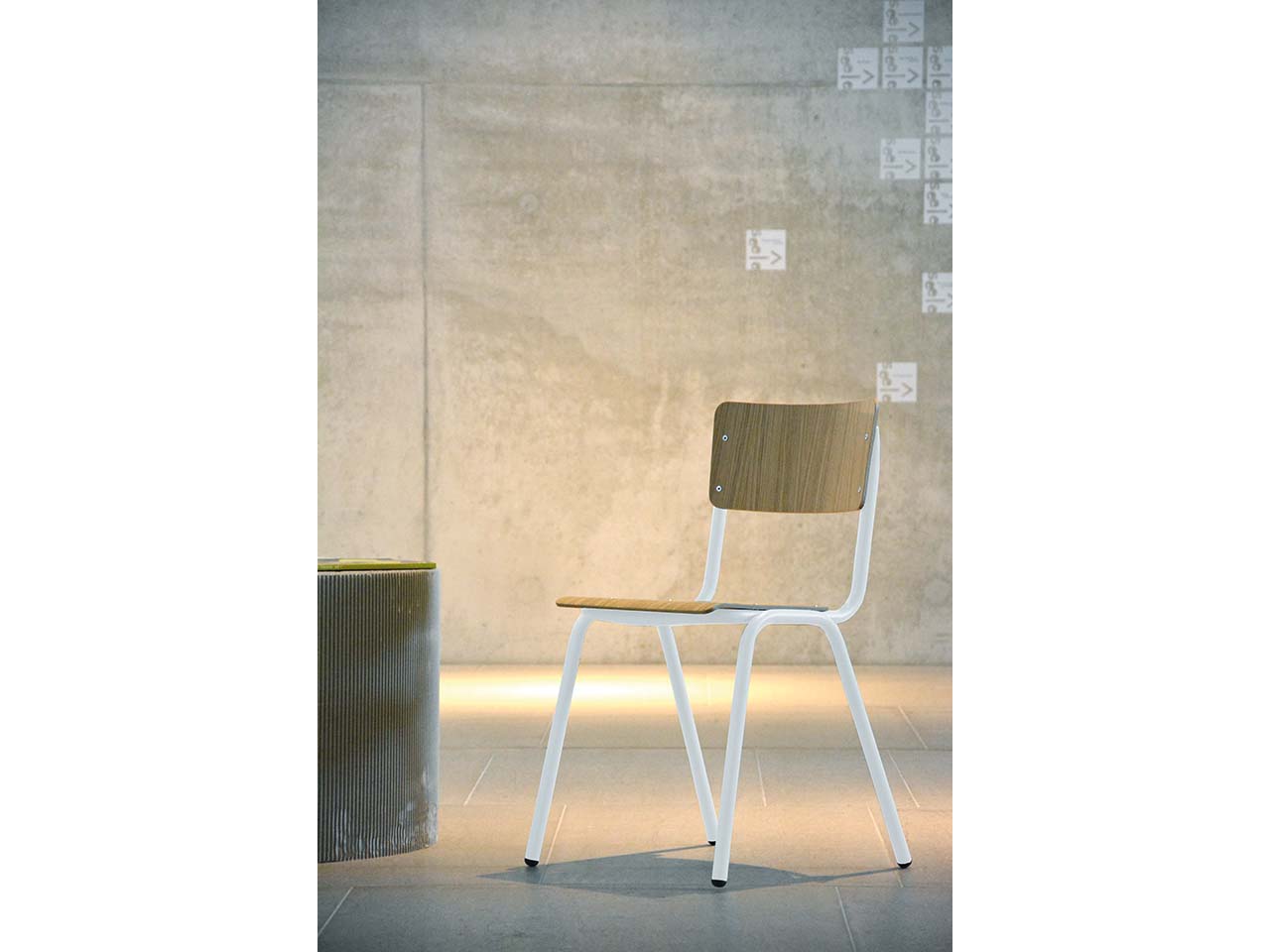 Das Doppelpack Besucherstühle bringt Farbe und Sitzkomfort in Räume! Das Design ist an Schulstühle aus dem vorherigen Jahrhundert angelehnt und punktet mit Retrocharme. Die Sitzschale ist ergonomisch geformt, wodurch ein hoher Sitzkomfort entsteht. Das langlebige Stahlrohrgestell ist in verschiedenen Farben erhältlich und sorgt für eine farbenfrohe Optik. Die Sitzfläche besteht aus Multiplex mit Echtholzfurnier aus Eichenholz.
