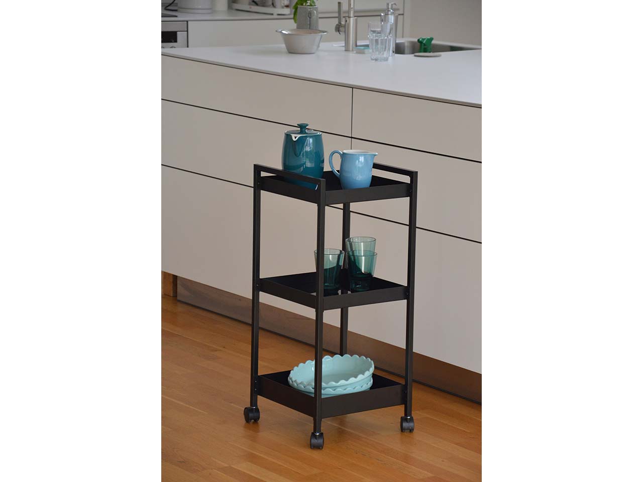 - Kompakter Servierwagen aus pulverbeschichtetem Stahlrohr
