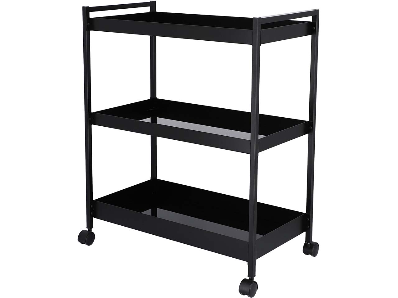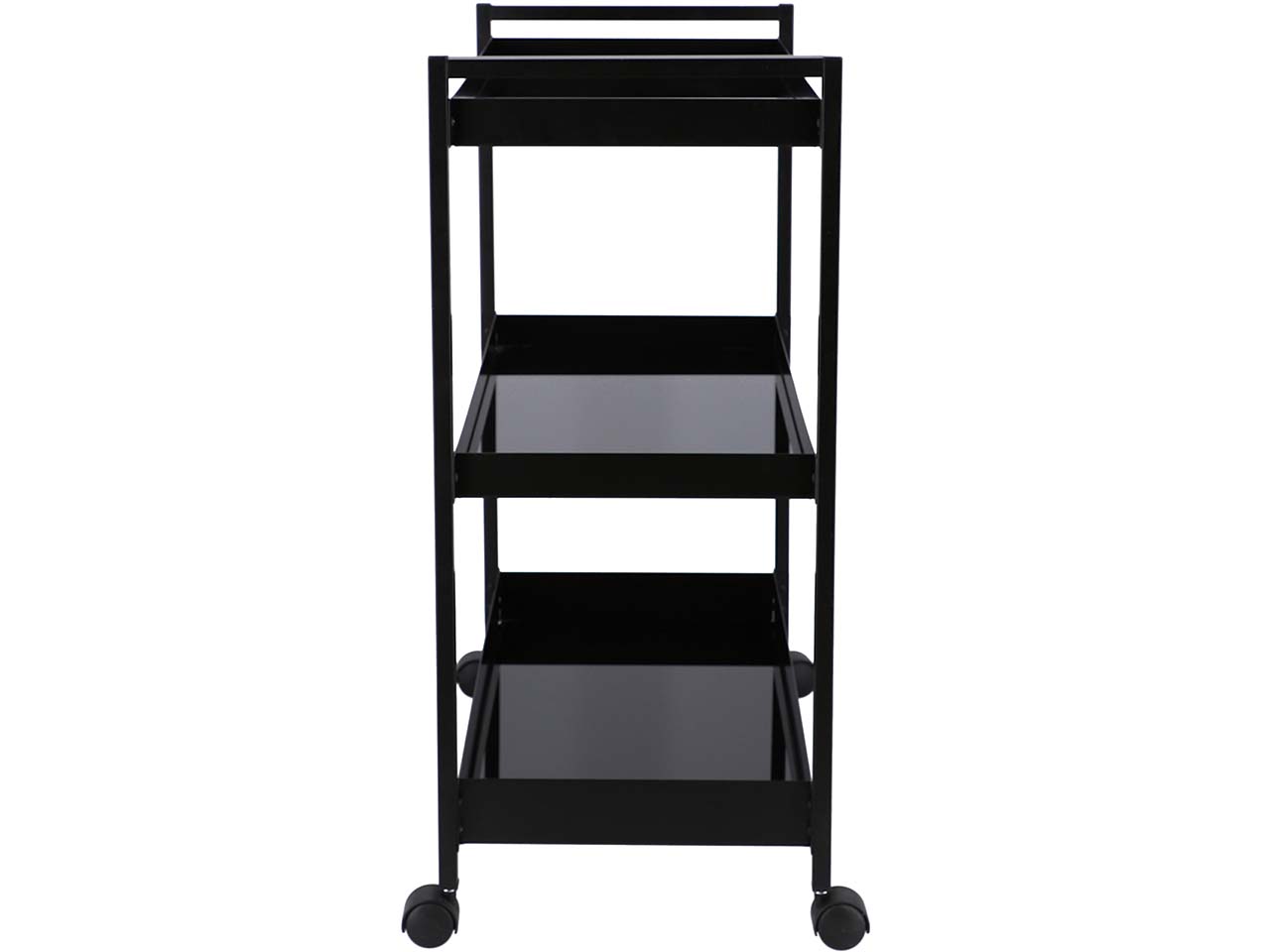 Dieser Servierwagen bringt Getränke, Snacks und Co. ganz elegant zu Gästen! Auf den drei Etagen ist viel Platz für allerlei Köstlichkeiten – und mehr. Der Servierwagen aus pulverbeschichtetem Stahlrohr kann auch als mobiles Regal benutzt werden. Das Design ist zeitlos und modern gehalten. Die Böden aus Glas unterstreichen den eleganten Eindruck.