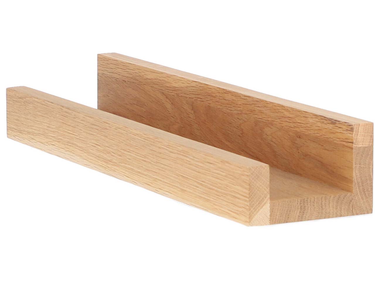 Dieses Wandregal setzt Kerzen, Bücher, Flaschen oder Ähnliches perfekt in Szene und sorgt gleichzeitig für eine aufgeräumte Atmosphäre. Das Regal aus massiver, geölter Eiche verströmt einen natürlichen Charme und passt in Badezimmer, Flur, Küche oder Wohnzimmer. Dank durchdachtem Design stehen Gegenstände hier sicher.