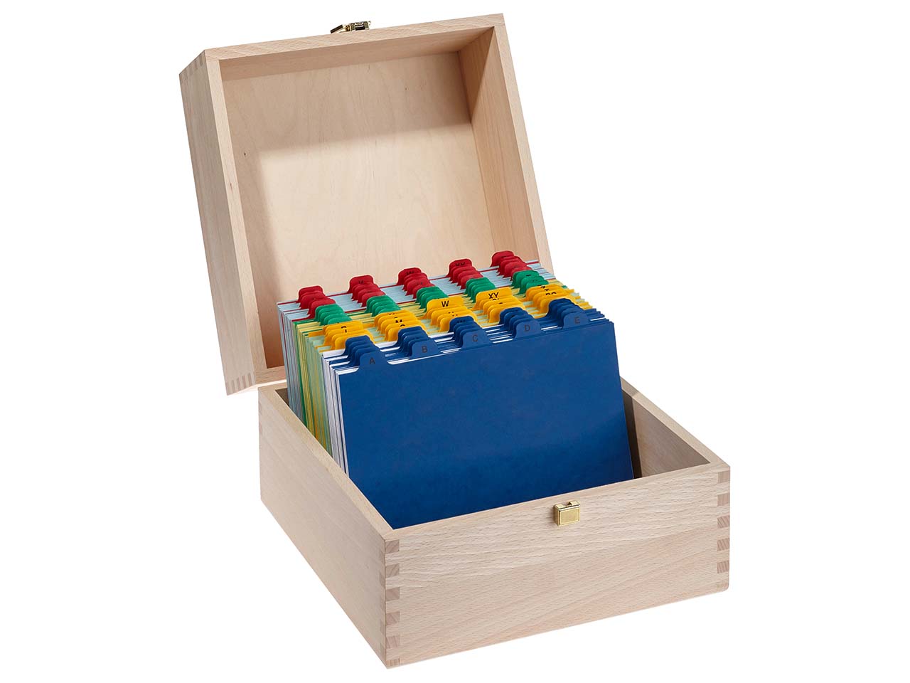 Die Karteikartenbox mit Deckel wird aus unbehandeltem Buchenholz in Deutschland hergestellt. Das Holz stammt aus heimischer, verantwortungsvoller Forstwirtschaft.