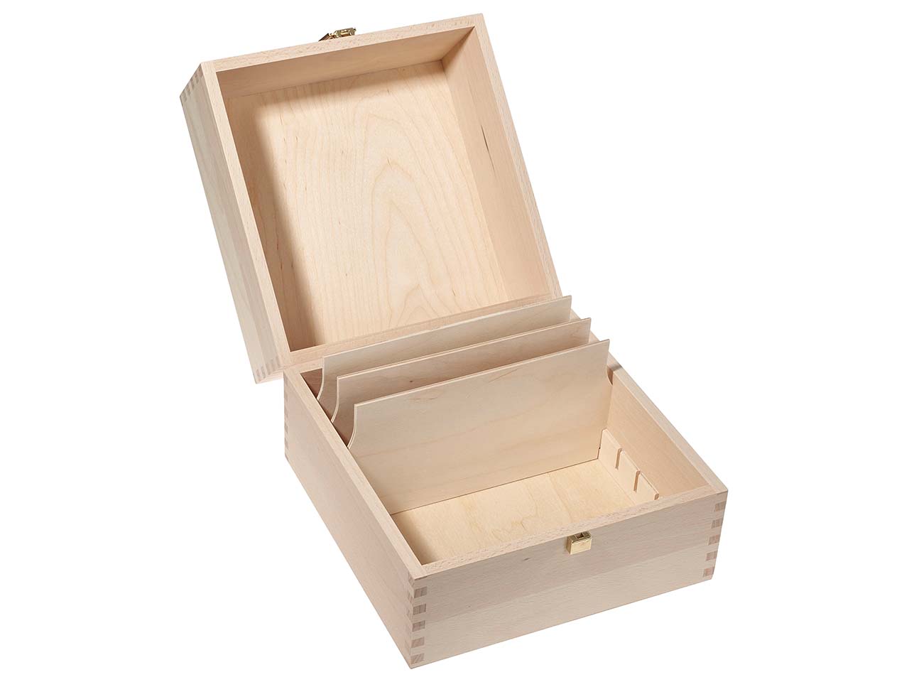 Karteikartenbox aus Holz mit Trennstegen und Deckel