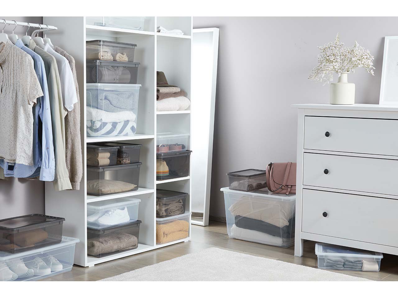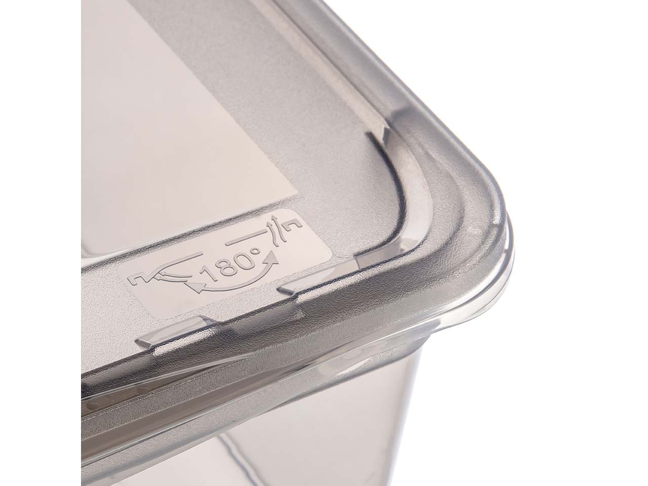 Ob Kleinteile, Dekorationen, Schuhe oder Sportzubehör – in diesen transparenten Aufbewahrungsboxen mit optionaler Belüftungsfunktion findet alles seinen idealen Platz! Das patentierte System ermöglicht es, eine dauerhafte Belüftung oder Staubschutz durch Rotation des Deckels einzustellen. Der erhöhte Deckelrand sorgt dafür, dass die Boxen sicher und platzsparend gestapelt werden können. Mit einem praktischen Klickverschluss an den Deckellaschen ist die Handhabung besonders benutzerfreundlich. Gefertigt sind die Boxen aus strapazierfähigem und langlebigem PP-Kunststoff. Erhältlich mit 11 l oder 18 l Fassungsvermögen. Inhalt 3 Stk.