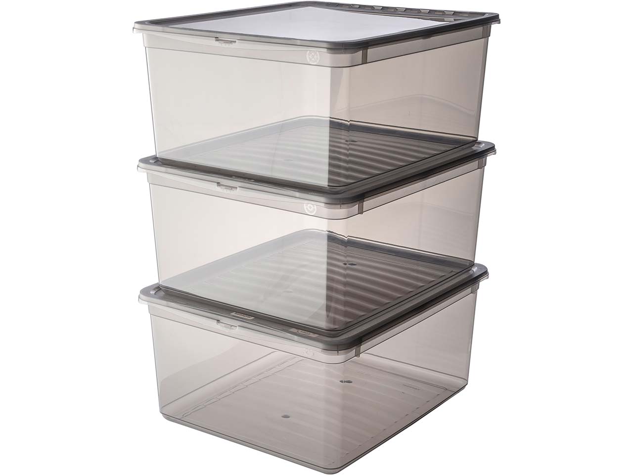 3 transparente Aufbewahrungsboxen mit optionaler Belüftungsfunktion