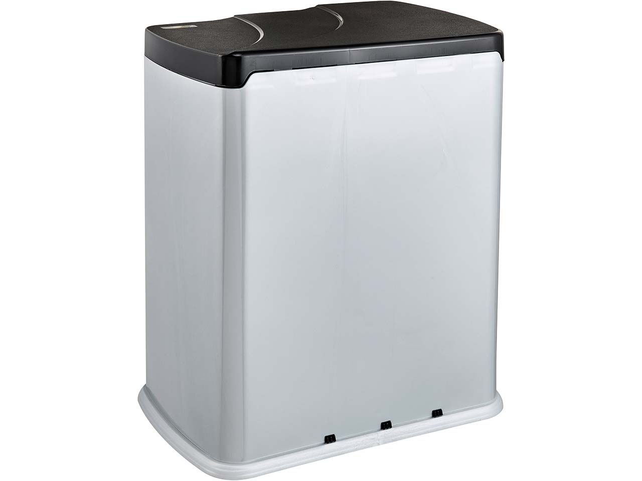Dieser praktische Treteimer aus recyceltem Kunststoff ist die ideale Lösung für eine einfache und effiziente Mülltrennung im Alltag. Mit zwei unterschiedlich großen Behältern (7 l und 15 l Fassungsvermögen) bietet er genügend Platz für unterschiedliche Abfallarten und macht Recycling zum Kinderspiel. Dank des benutzerfreundlichen Tretpedals lässt sich der Deckel bequem im Stehen öffnen und schließen – hygienisch und ohne lästiges Bücken. Die beiden voneinander abgetrennten Einsätze sind separat herausnehmbar. Der Abfall-Treteimer für Abfallsäcke von 18 bis 25 l passt in Küche, Büro und Co. B 29 x T 39,5 x H 43,5 cm.