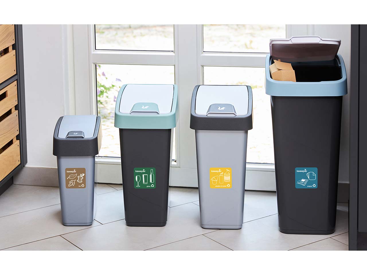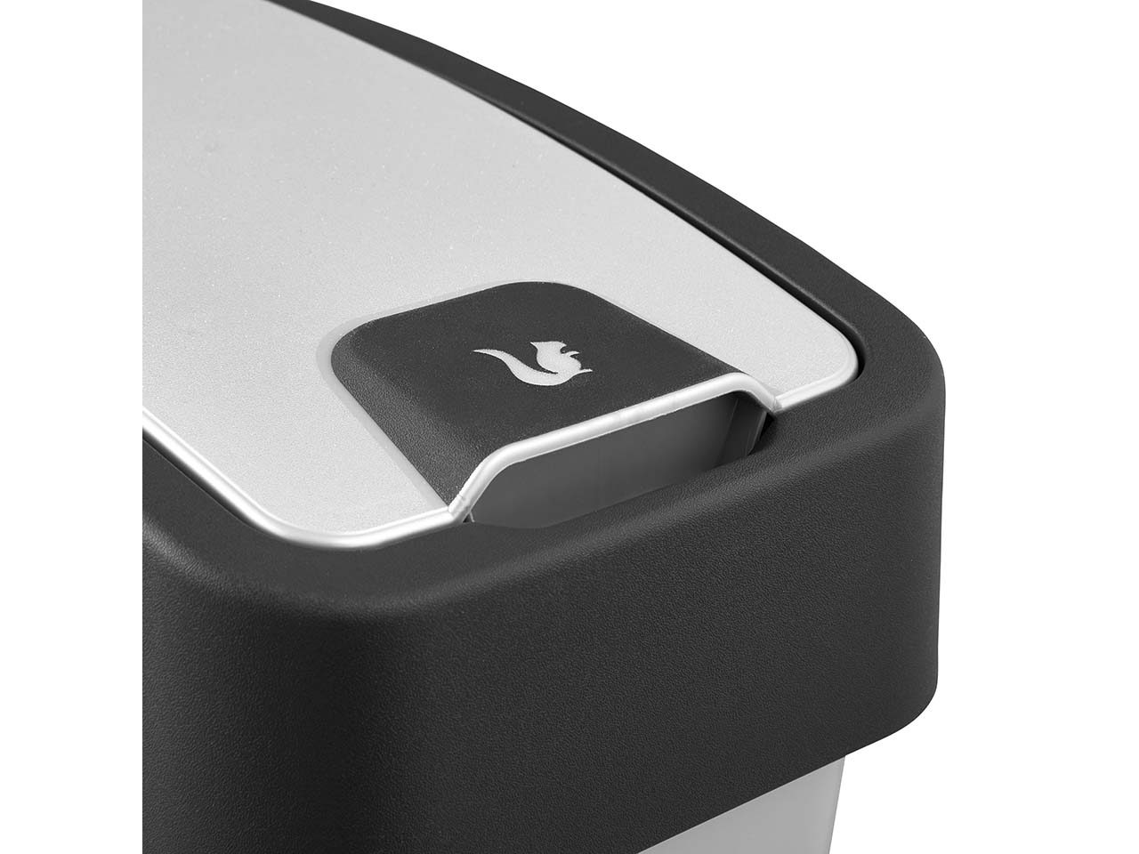 Der kompakte Premium-Abfallbehälter aus Recycling-Kunststoff vereint modernes Design mit höchster Funktionalität. Mit seiner cleveren 2-Wege-Öffnung – entweder nach oben klappbar oder nach unten schwingbar – bietet er maximale Flexibilität und macht die Abfallentsorgung so komfortabel wie nie zuvor. Die Soft-Touch-Grifffläche ermöglicht ein angenehmes Bediengefühl. Der Abfalleimer eignet sich für die Nutzung mit Abfallsäcken von 18 bis 20 l. Der Deckel ist komplett abnehmbar, was die Reinigung sehr einfach macht. Mit 10 l Fassungsvermögen, B 18 x T 29,5 x H 36,5 cm.