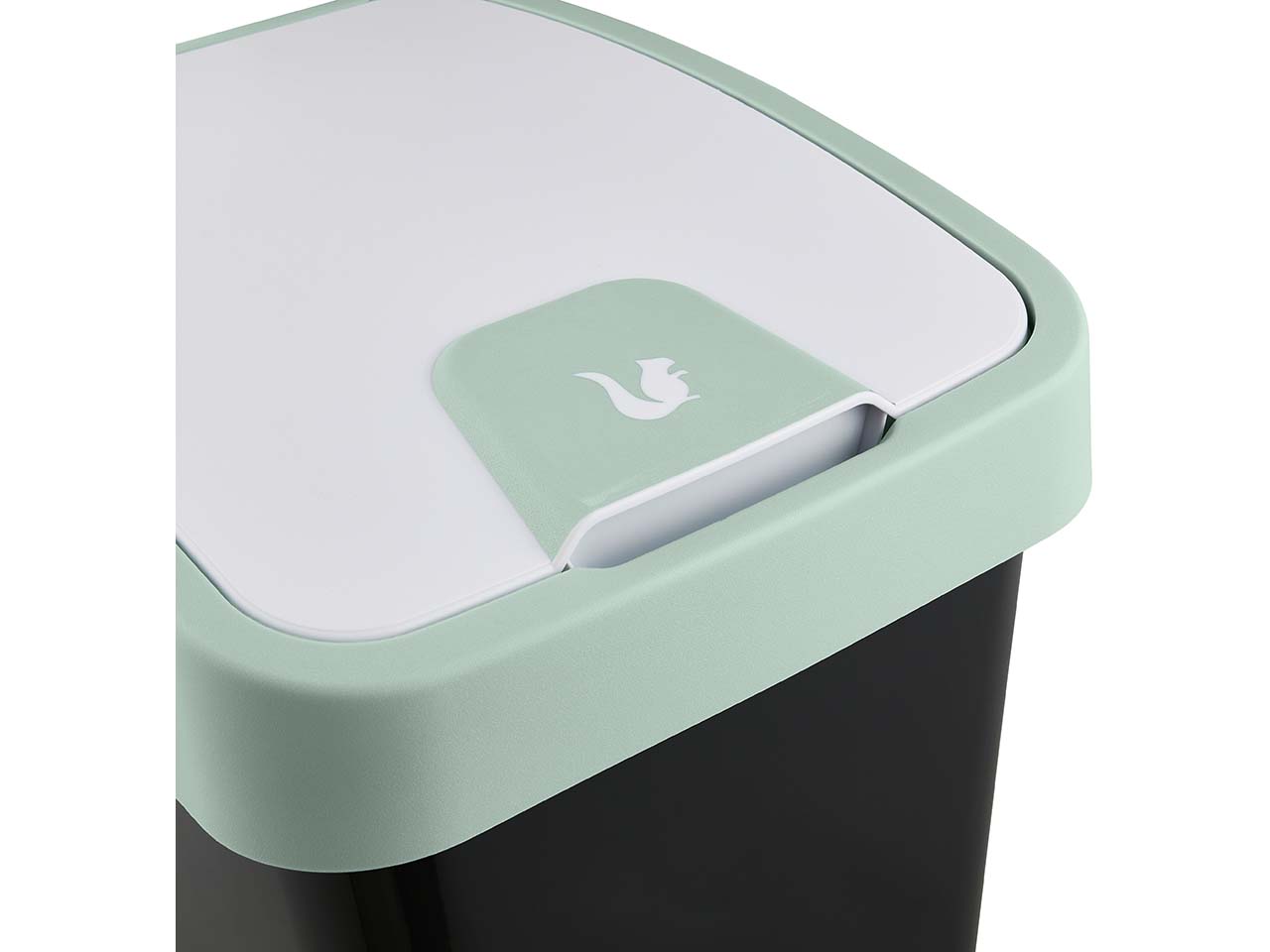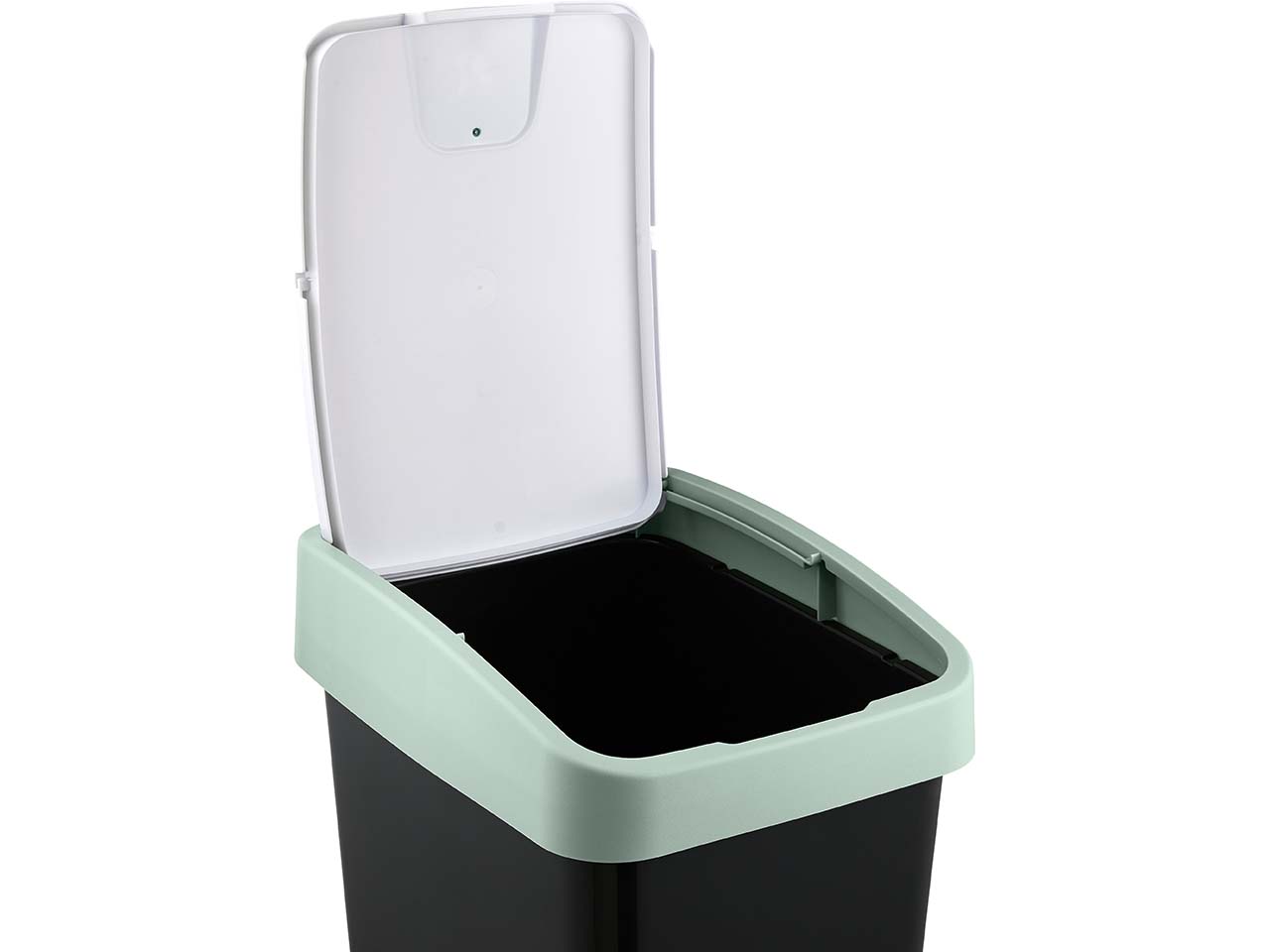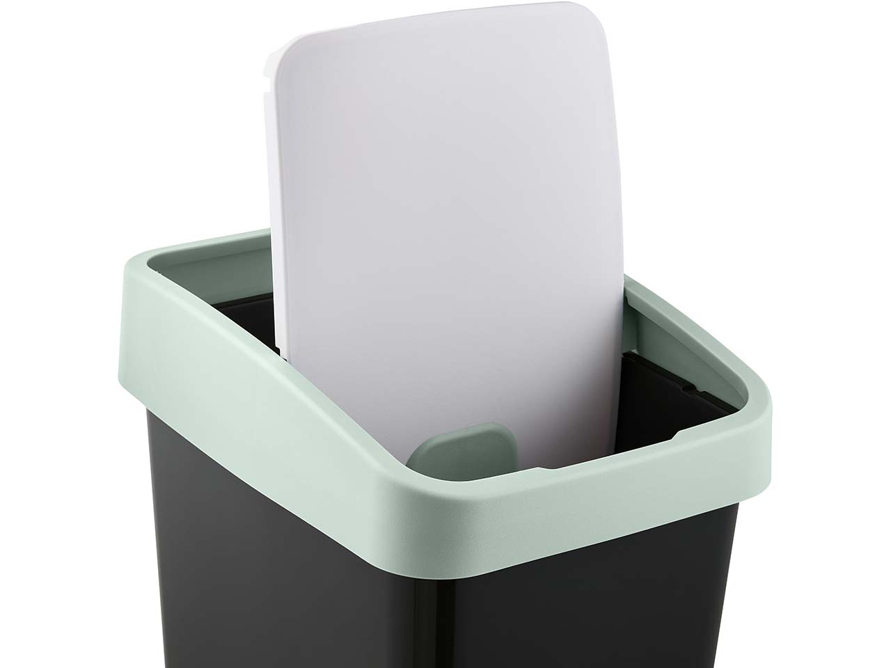 Der kompakte Premium-Abfallbehälter aus Recycling-Kunststoff vereint modernes Design mit höchster Funktionalität. Mit seiner cleveren 2-Wege-Öffnung – entweder nach oben klappbar oder nach unten schwingbar – bietet er maximale Flexibilität und macht die Abfallentsorgung so komfortabel wie nie zuvor. Die Soft-Touch-Grifffläche ermöglicht ein angenehmes Bediengefühl. Der Deckel ist komplett abnehmbar, was die Reinigung sehr einfach macht.