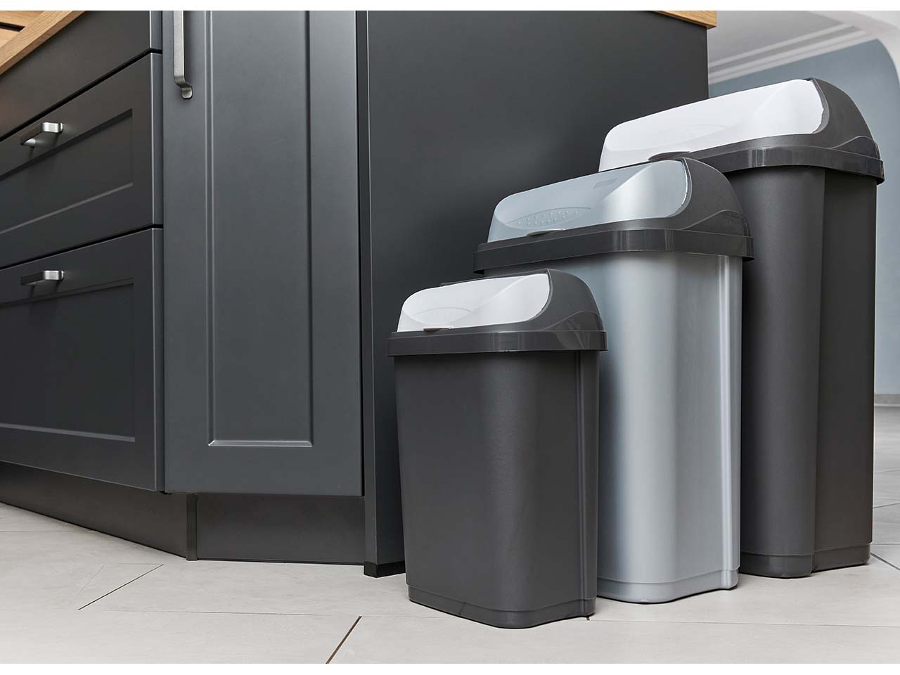Der robuste Abfallbehälter aus Recycling-Kunststoff ist in zwei Größen erhältlich und ein praktischer Alltagshelfer, der Ordnung schafft, ohne Kompromisse einzugehen. Der Rolldeckel begeistert mit angenehmer Haptik und macht die Abfallentsorgung kinderleicht – ein kleiner Handgriff genügt. Das dezente, moderne Design fügt sich harmonisch in verschiedene Raumkonzepte ein. Der abnehmbare Deckel lässt sich im Handumdrehen entfernen, sodass sich der Behälter mühelos mit einem feuchten Tuch oder Schwamm reinigen lässt. Mit 25 l oder 50 l Fassungsvermögen.