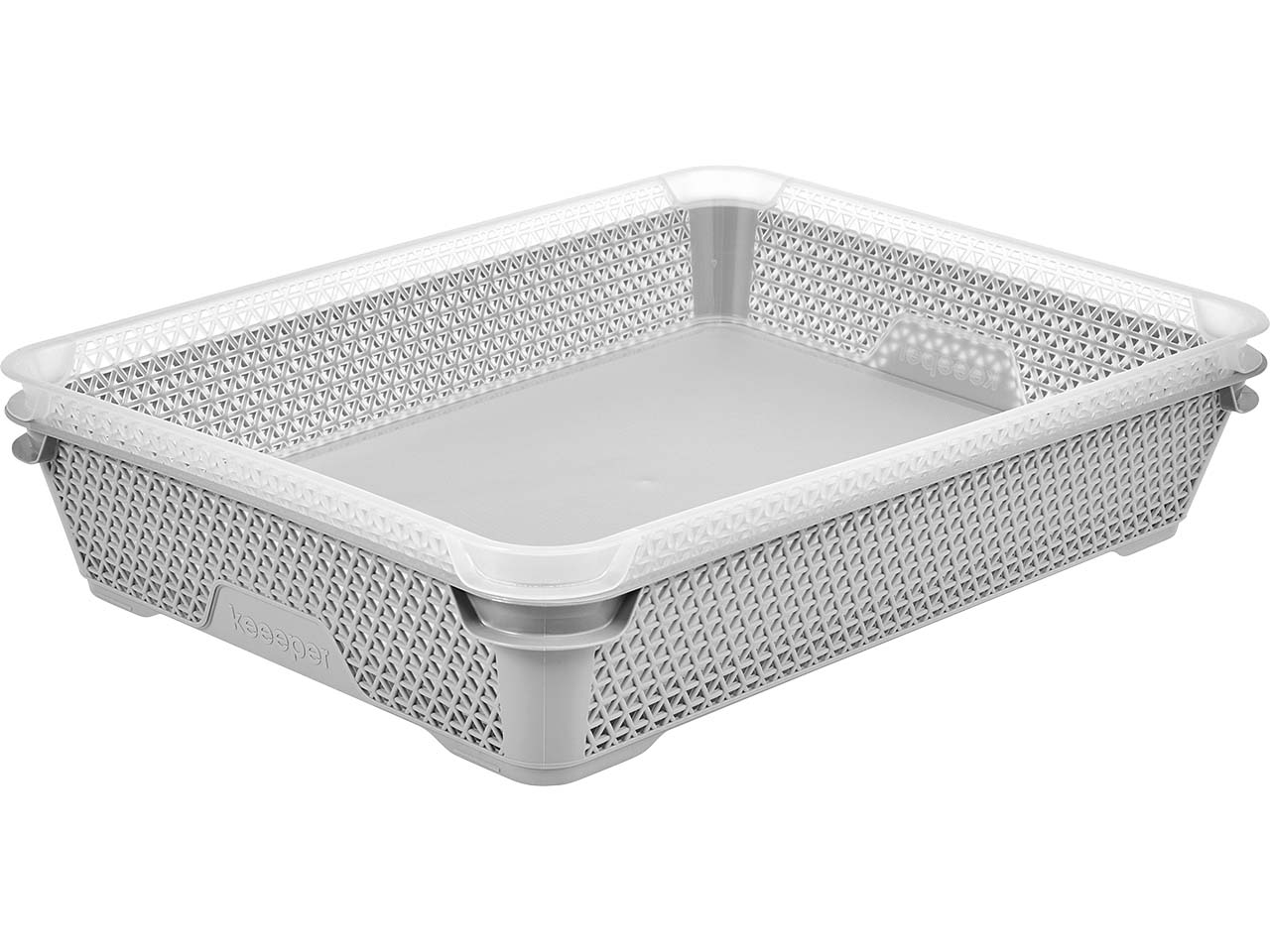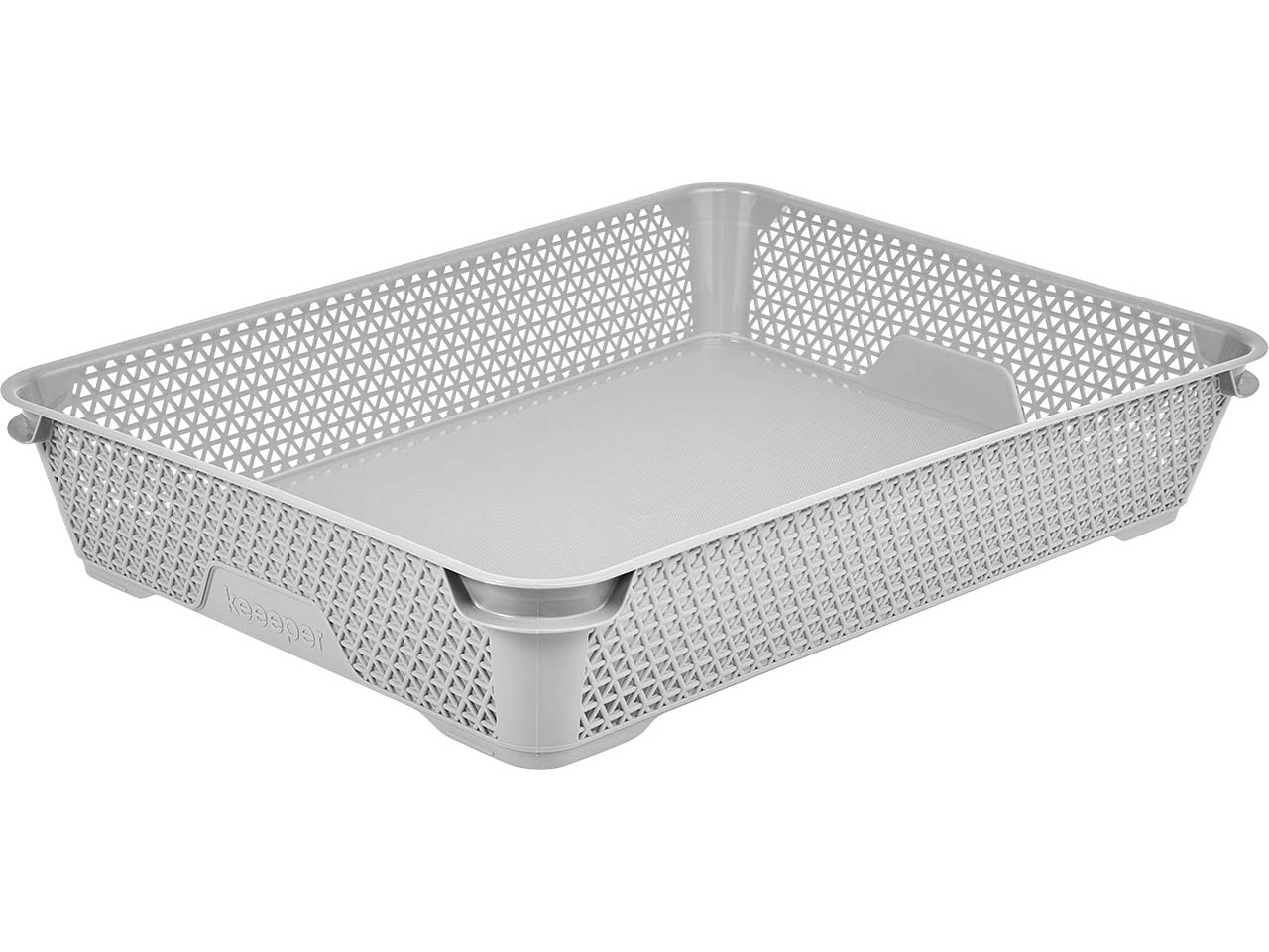 Ob im Büro oder zu Hause: In diesem stapelbaren Korb sind Kleinteile wie Stifte, Schreibtischzubehör, Zeitschriften, Briefe und vieles mehr ordentlich aufbewahrt. Der Stapelkorb besteht aus hochwertigem, stabilem Kunststoff und kann mit weiteren Körben quer aufeinander gestapelt werden. Die Antihaftoberflächeim Inneren sorgt dafür, dass Kleinteile dort liegen bleiben, wo sie abgelegt werden. In verschiedenen Größen erhältlich.
