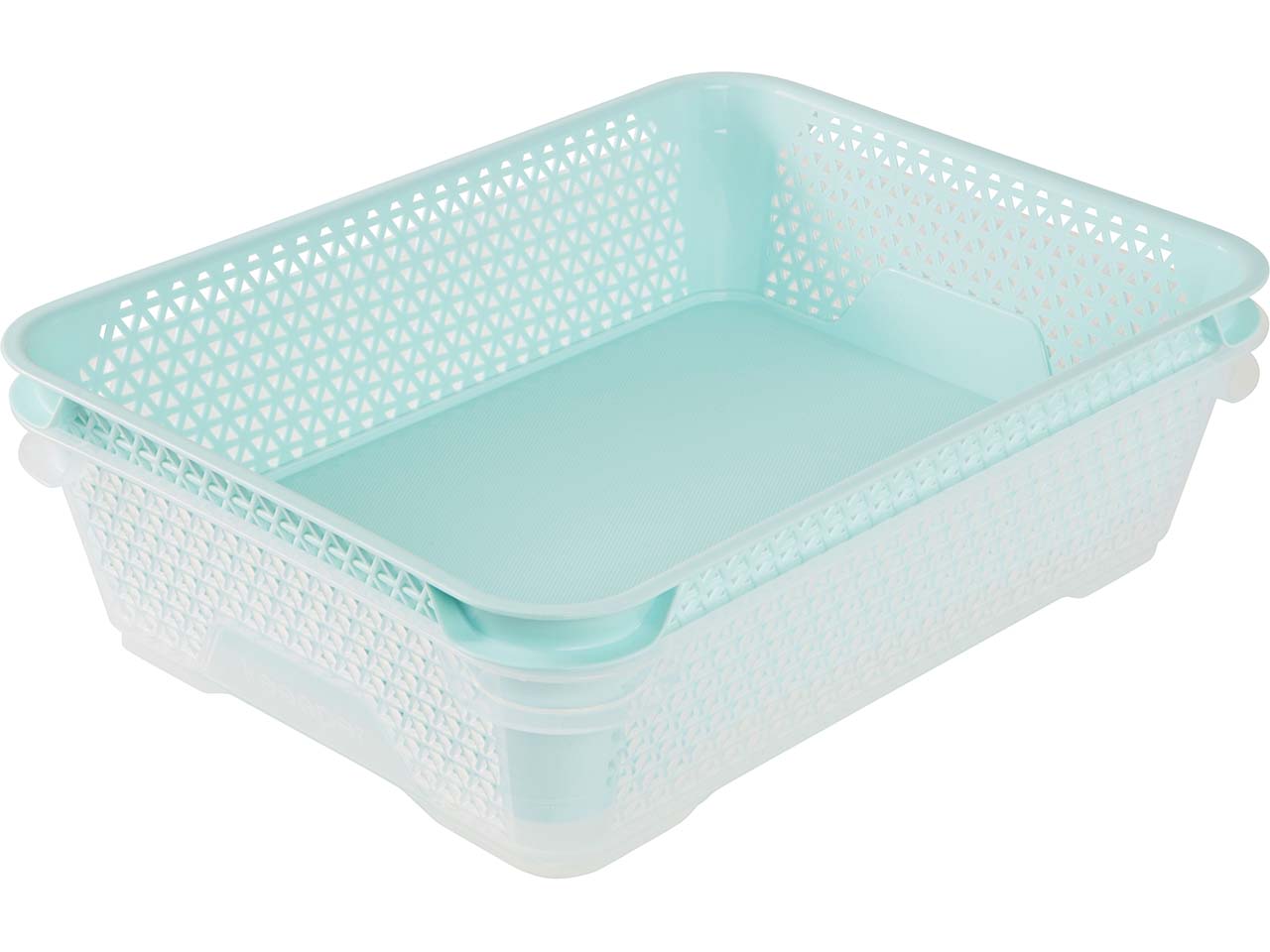 Ob im Büro oder zu Hause: In diesem stapelbaren Korb sind Kleinteile wie Stifte, Schreibtischzubehör, Zeitschriften, Briefe und vieles mehr ordentlich aufbewahrt. Der Stapelkorb besteht aus hochwertigem, stabilem Kunststoff und kann mit weiteren Körben quer aufeinander gestapelt werden. Die Antihaftoberflächeim Inneren sorgt dafür, dass Kleinteile dort liegen bleiben, wo sie abgelegt werden. In verschiedenen Größen erhältlich.