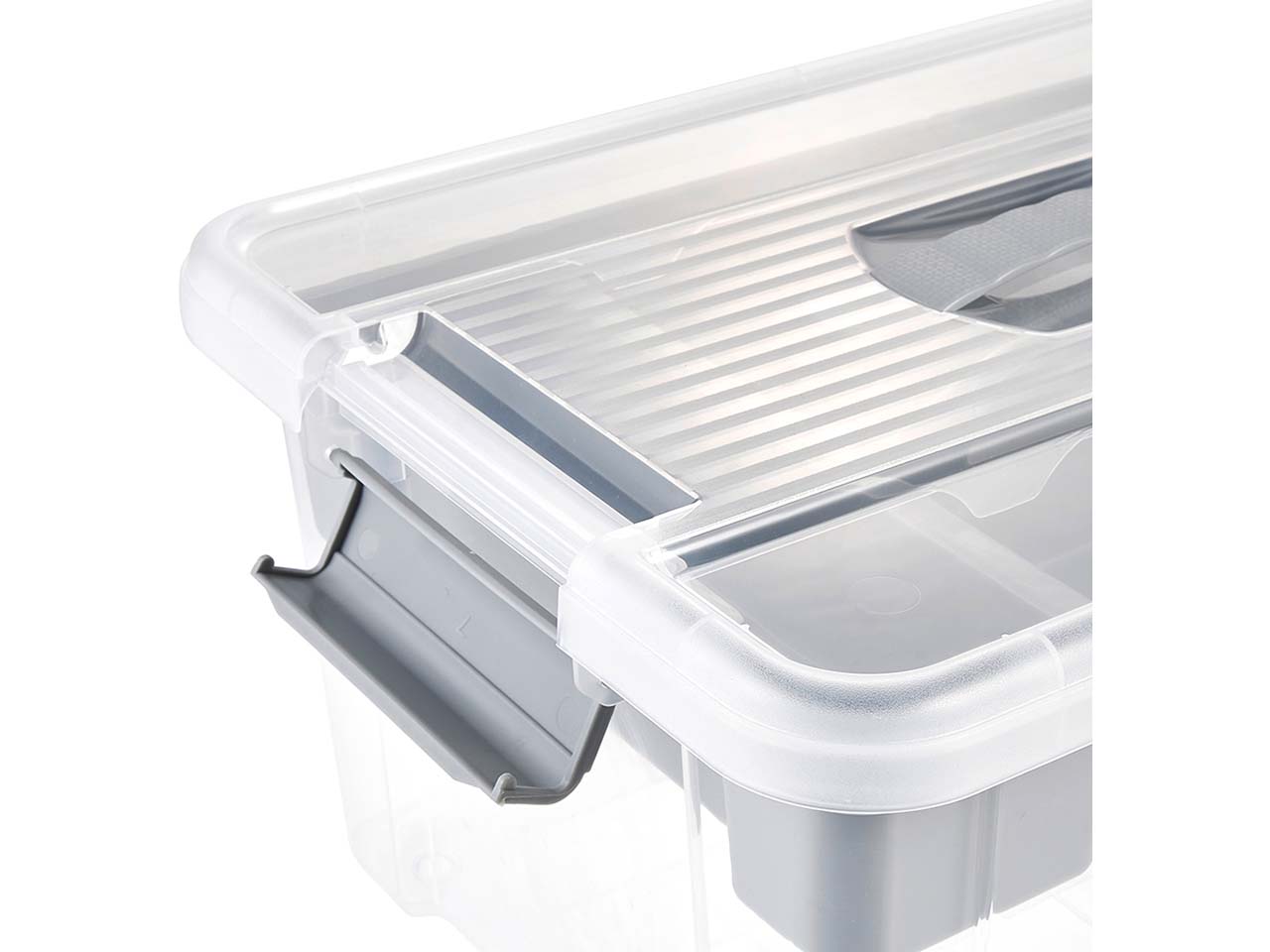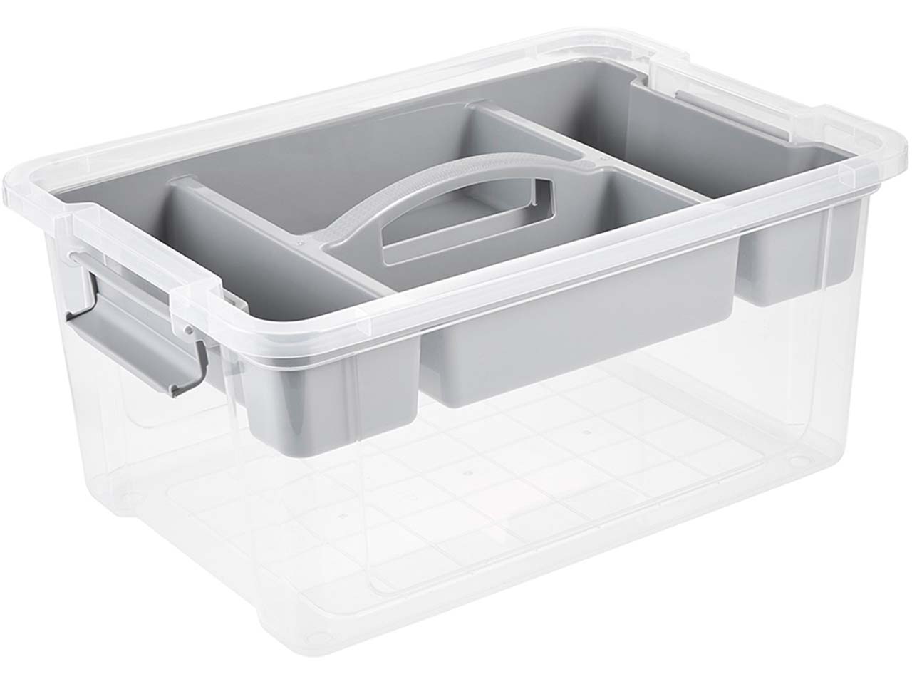 Dieser Organizer-Box vereinfacht den Alltag! Sie bietet viel Platz für alles Mögliche wie Spielzeug, Werkzeug, Bastel- oder Nähzeug. Besonders praktisch: Der herausnehmbare Einsatz ermöglicht eine ordentliche Aufbewahrung von Kleinteilen und verfügt über einen integrierten Griff. Der Deckel schließt sicher mit Clips. Der Tragegriff hilft beim Transport.