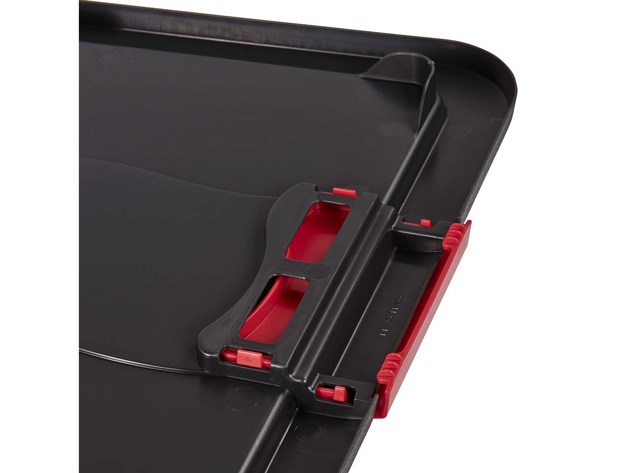 - Mit integrierten Schiebeverschlüssen im Deckel
