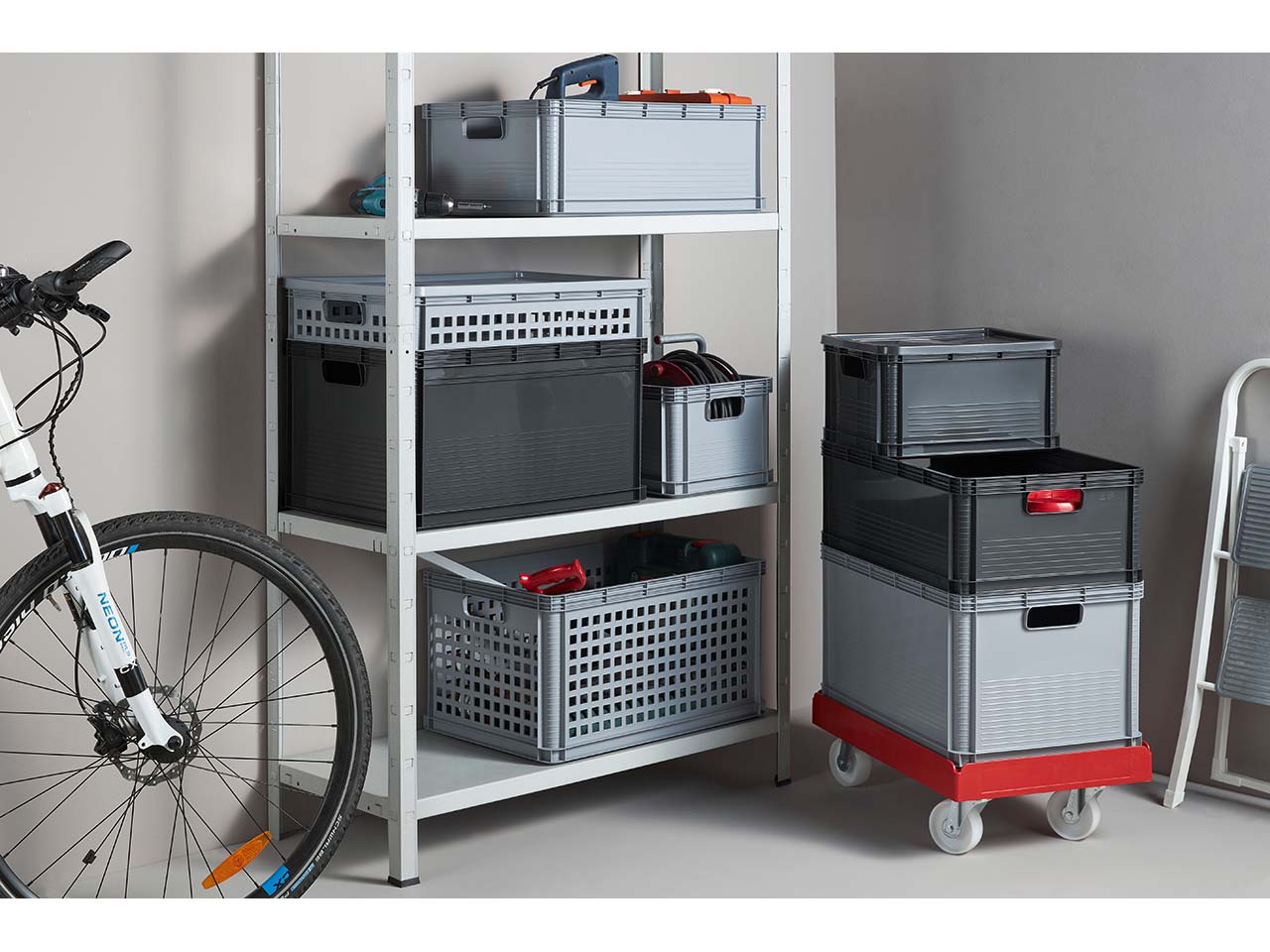 Dieser stapelbare Transportkorb ist ideal, um den Inhalt direkt zu erkennen. Die Löcher haben einen weiteren Vorteil: sie verbessern die Luftzirkulation. Hergestellt ist die Aufbewahrungslösung aus robustem Polypropylen in Industriequalität. Dadurch eignet sich der Transportkorb auch für private sowie professionelle Anwendungen. Der lebensmittelechte Korb ist säure- und laugenbeständig sowie temperaturbeständig von -20 °C bis +100 °C. Der praktische Deckel und die Grifflöcher machen ihn perfekt für den Transport. B 40 x T 60 x H 32 cm, mit 64 l Fassungsvermögen.