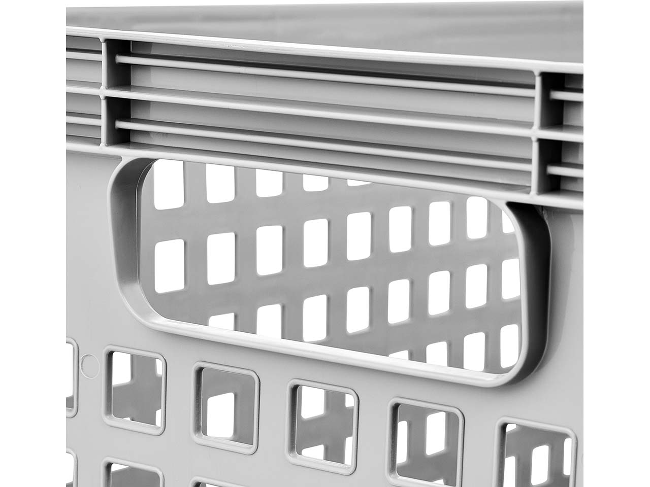 Dieser stapelbare Transportkorb bietet die ideale Möglichkeit, den Inhalt auf einen Blick zu erkennen. Die praktischen Löcher sorgen zusätzlich für eine verbesserte Luftzirkulation. Gefertigt aus robustem Polypropylen in Industriequalität, eignet sich diese Aufbewahrungslösung gleichermaßen für den privaten wie auch den professionellen Einsatz. Der lebensmittelechte Korb ist äußerst beständig gegen Säuren und Laugen und hält Temperaturen von -20 °C bis +100 °C stand. Die praktischen Grifflöcher vereinfach den Transport. B 40 x T 60 x H 32 cm, mit 64 l Fassungsvermögen.