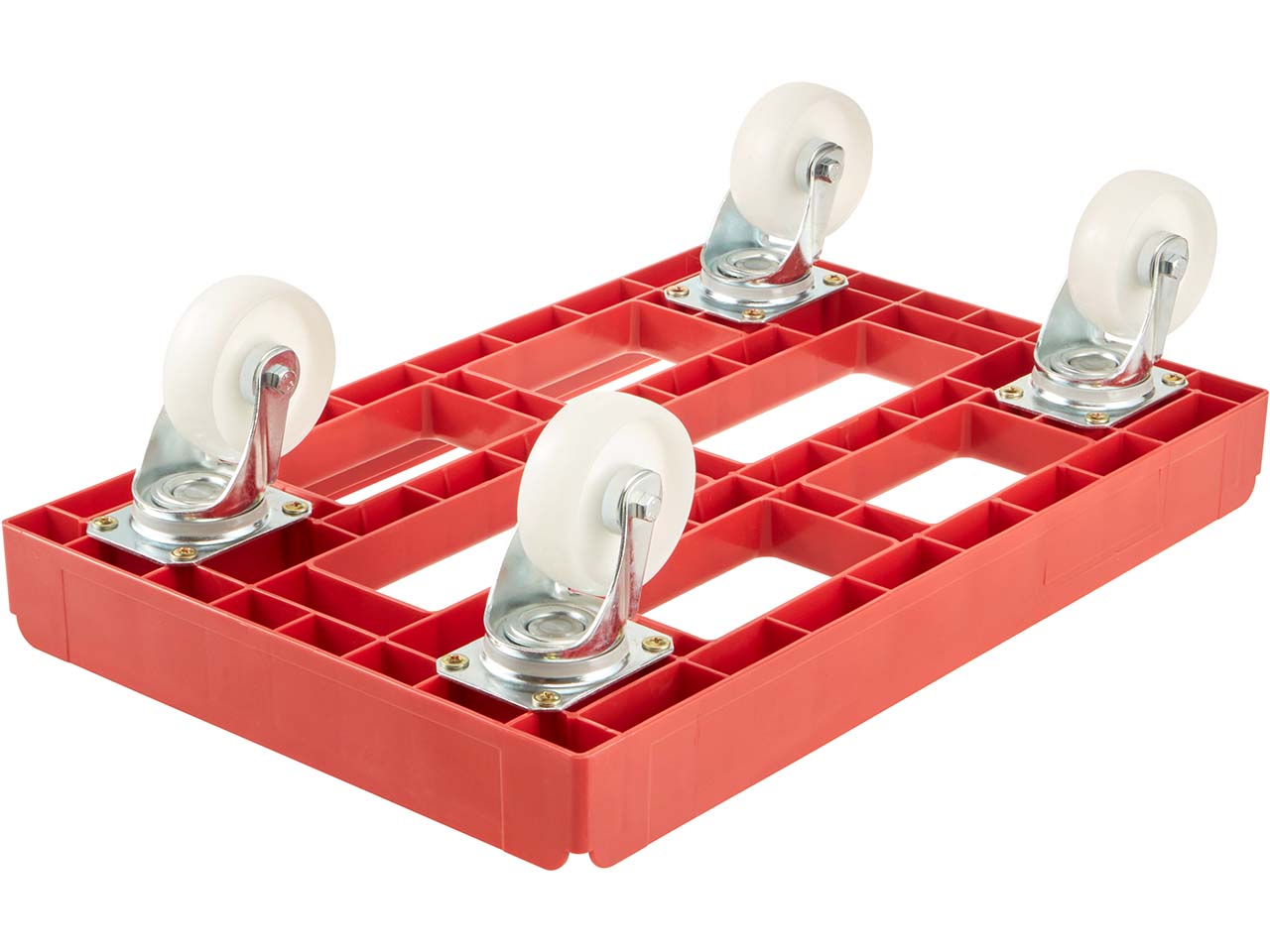 Dieser Transportroller ermöglicht es, Aufbewahrungsboxen kipp- und rutschsicher zu transportieren. Die stabile Konstruktion kann mit bis zu 300 kg belastet werden und ist dank der 4 leichtgängigen Lenkrollen einfach zu bedienen. B 41 x T 61 cm.
