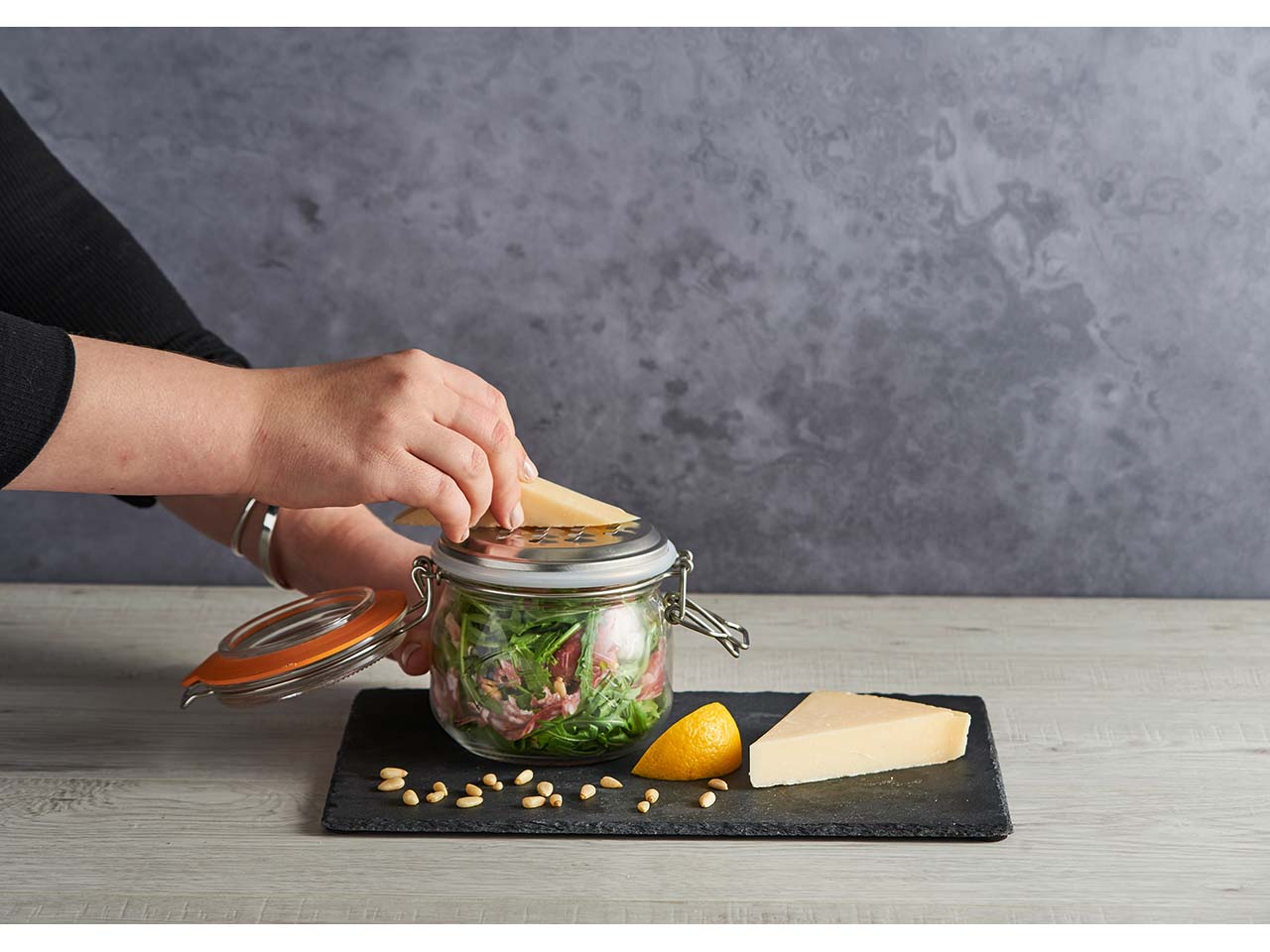 - Vorratsglas mit Reibeaufsatz aus rostfreiem Edelstahl
