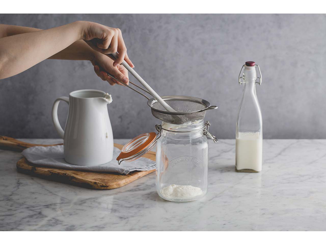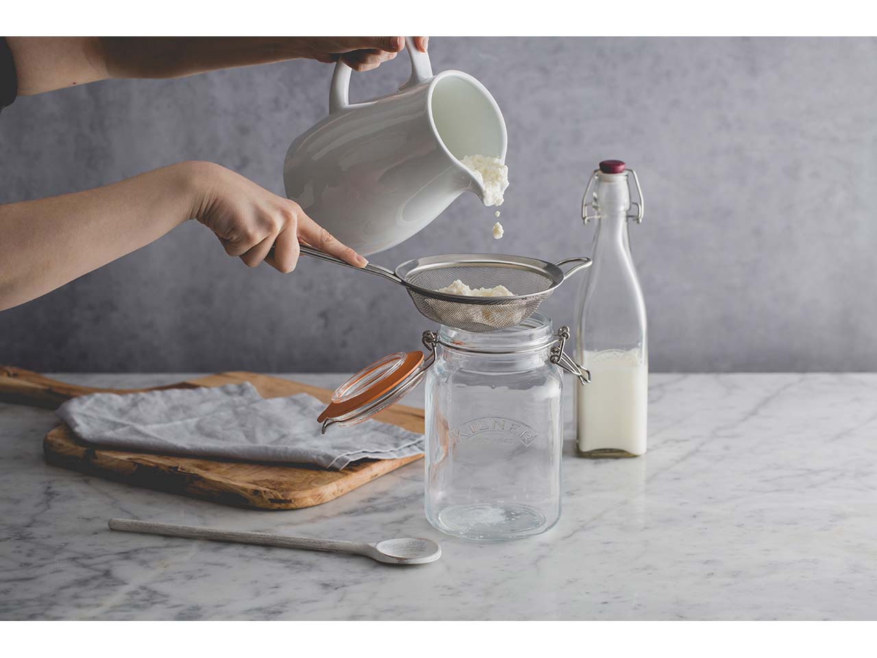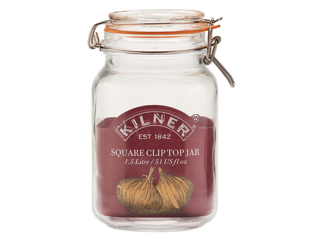 Das originale, quadratische KILNER Vorratsglas mit Bügelverschluss ist ideal, um Marmelade, Püree, Pestos, selbstgemachte Brotaufstriche und mehr einzumachen und zu konservieren. Trockene Lebensmittel wie Mehl, Kaffee und Reis lassen sich ebenfalls lagern und aufbewahren. Die hochwertigen Edelstahlclips sorgen dafür, dass das Vorratsglas luftdicht schließt. Das spülmaschinengeeignete Vorratsglas hat ein Fassungsvermögen von 1,5 l.