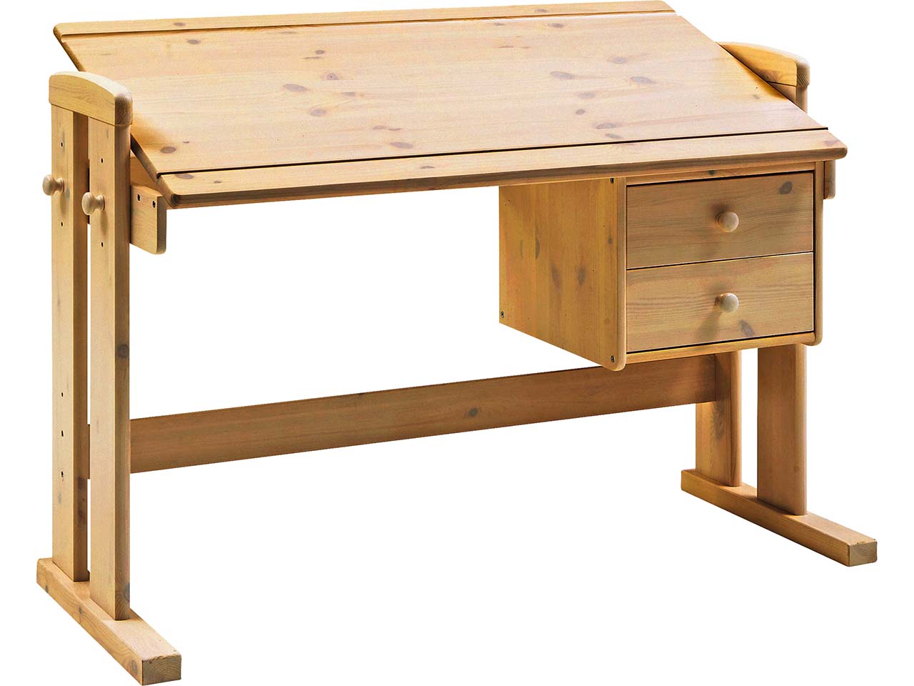 Der Kinderschreibtisch "Raiser" wächst mit! Der Tisch aus Kiefernholz aus unabhängiger, zertifizierter europäischer Forstwirtschaft ist höhen- und neigungsverstellbar. Mit zwei Schubladen für mehr Ordnung auf dem Tisch. Der Schreibtisch bietet viel Platz für verschiedene Tätigkeiten. B 120 x T 60 x H 65/72/79 cm.