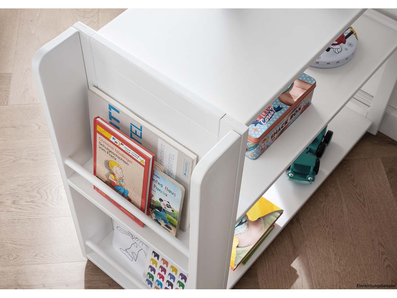 - Offenes Regal mit seitlichem Bücherregal nach dem Montessori-Prinzip