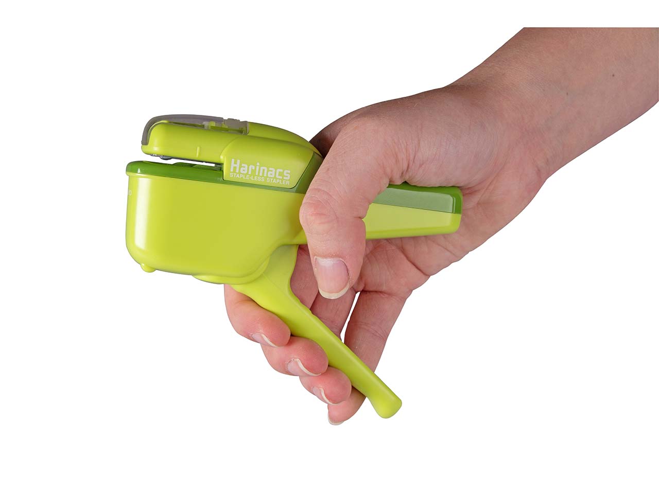 Das Heftgerät benötigt im Gegensatz zu herkömmlichen Tackern keine Klammernadeln. Da keine Nadeln auftragen passt ca. doppelt so viel Papier in einen Order. Aktenvernichter werden geschont, da kein Metall am Papier ist. Das Gehäuse besteht aus Recycling-Kunststoff (R-ABS). die Verpackung ist aus Recyclingkarton.