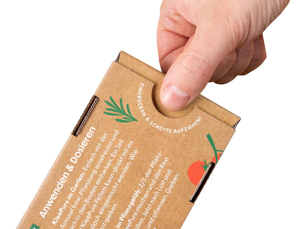 Die angenehm nach Heu duftenden KleePura Pellets enthalten alles was Pflanzen zum Wachsen und für eine reiche Ernte benötigen. KleePura der Biodünger wird vor allem für die Anwendung im Freiland (Balkon & Garten) und im Hochbeet empfohlen. 1. Die KleePura Pellets vor der Saat oder Pflanzung von Hand ausstreuen und circa 5 cm in die Erde einmischen. 2. Ein Teil der Pellets ins Pflanzloch geben und gut mit Erde vermischen. 3. Anschließend die gewünschten Kulturen aussäen bzw. pflanzen und alles zusammen gut angießen! Die KleePura Pellets quellen im Boden zügig auf und die enthaltenen Nährstoffe werden über das Bodenleben an die Pflanzen freigesetzt. Die Dosierung richtet sich nach dem individuellen Nährstoff- bzw. Düngebedarf der verschiedenen Kulturpflanzen und ist auf der Verpackung detailliert erläutert. Nach Bedarf kann KleePura jeder Zeit nachgedüngt werden (1-2 Hände um jede Pflanze streuen und vorsichtig einmischen). KleePura Der Biodünger (1,75 kg) in der großen Box mit Dosierschütte für ca. 18 m² |