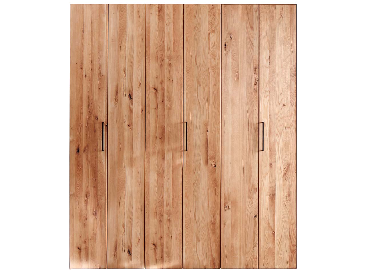Dieser exzellent gearbeitete, wunderschöne Kleiderschrank mit Falttüren bereichert Ihr Wohn- und Schlafzimmer. Das Möbelstück ist aus massiver, FSC-zertifizierter Wildeiche gefertigt und als 1-5-türige Variante erhältlich. Verschiedenes, separat käufliches Zubehör wie ein optionales Passepartout ermöglichen eine Individualisierung. Inkl. Kleiderstange. Die Lieferung erfolgt ohne Passepartout.