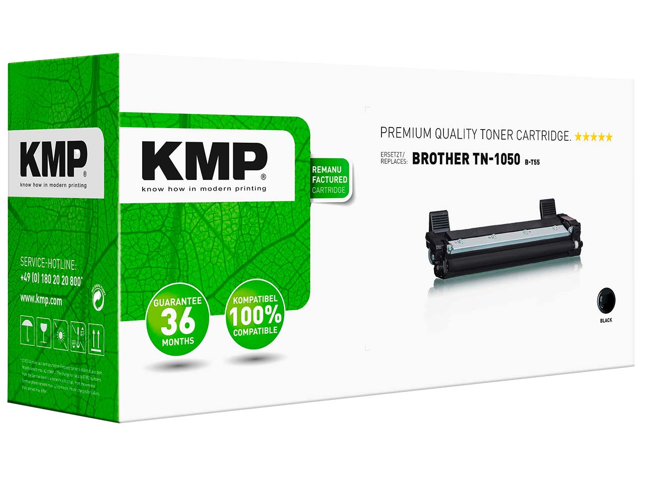 Der KMP Toner ist wiederaufbereitet und stellt so einen erstklassigen Ersatz für den Original Brother Toner TN-1050 dar. Er liefert die gleiche hochwertige Qualität, ist aber um einiges günstiger. Der Toner eignet sich für verschiedene Druckermodelle und erzielt bei 5 % Schwärzung bis zu 1.000 Ausdrucke. Farbe schwarz.
