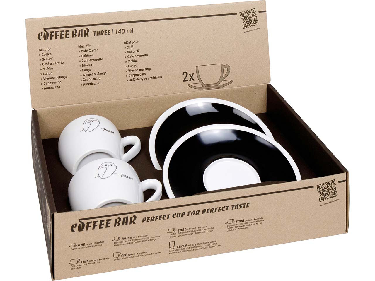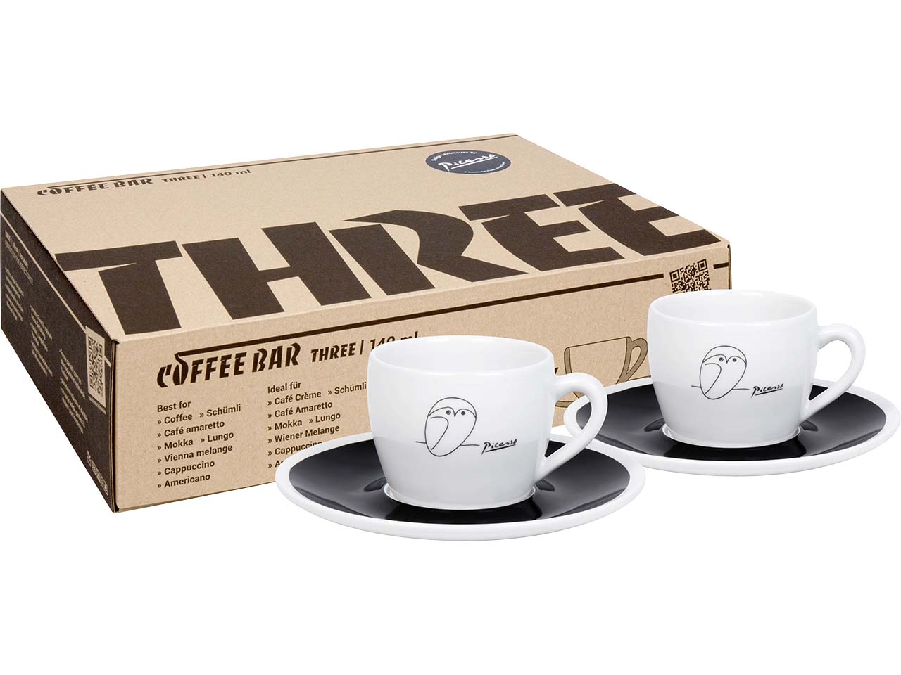Könitz Kaffeetassen 2er-Pack, 140 ml "CB THREE Picasso Le Chouette" mit Untertassen