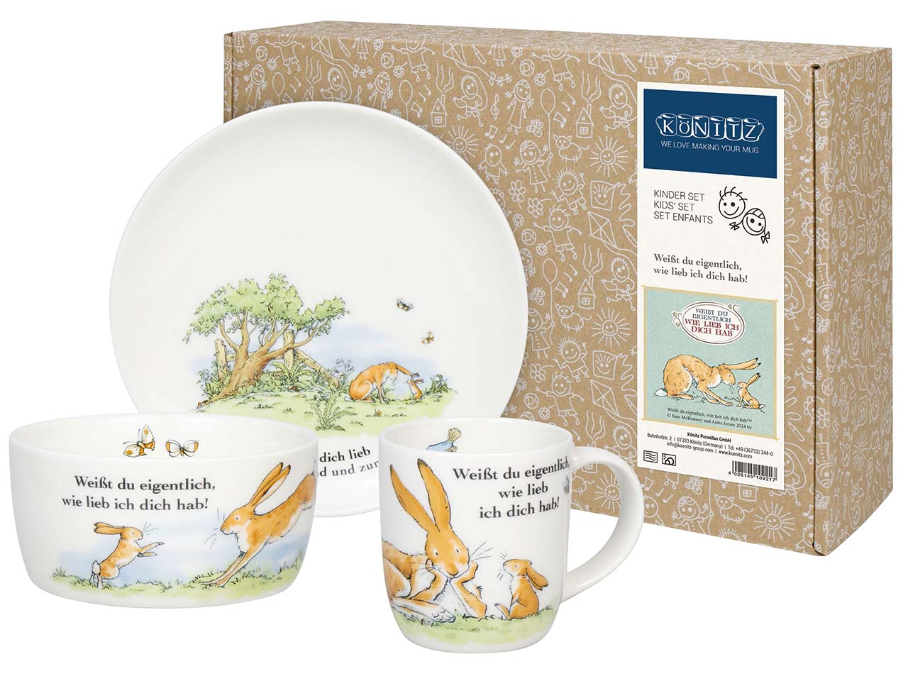Könitz Kinder-Geschirr-Set "Weißt du eigentlich, wie lieb ich dich hab?", Teller, Schüssel, Tasse