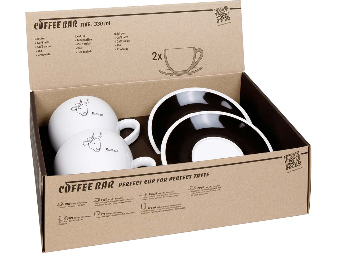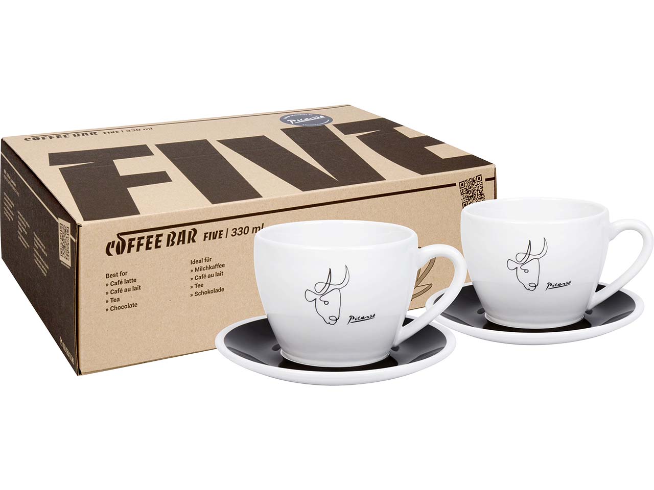 Könitz Milchkaffeetassen 2er-Pack, 330 ml "CB FIVE Picasso Le Taureau" mit Untertassen