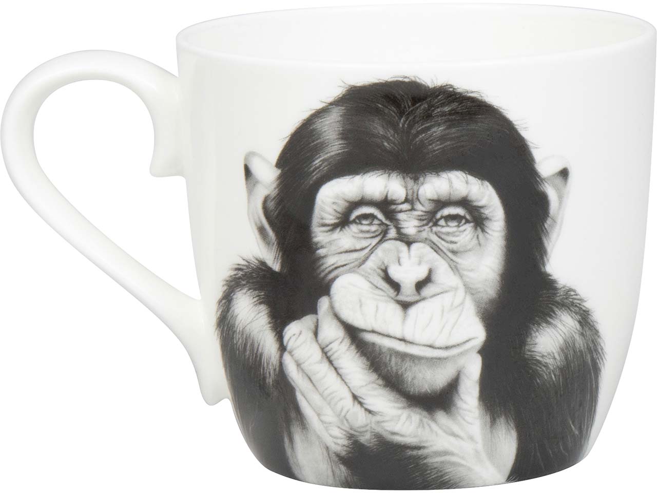 Einfach Kaffee, Tee und Co. genießen und über die großen oder kleinen Fragen des Universums nachdenken – genau dazu lädt diese wunderschöne Tasse aus hochwertigem Bone China ein. Der Affe in Bleistiftsoptik macht aus dem Becher ein kleines Kunstobjekt. Die Tasse eignet sich hervorragend als Geschenk für liebe Menschen. Sie ist ein echter Allrounder, der auch in die Spülmaschine oder die Mikrowelle kann.