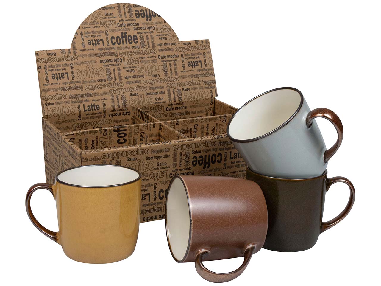 Einzigartig ansprechende Optik und ausgezeichnete Qualität stecken in diesen 4 Kaffeetassen. Gefertigt sind sie aus hochwertigem Bone China, was ihnen eine langlebige, robuste Qualität verleiht. Sie machen sich hervorragend zum Nachmittagskaffee und auch Tee schmeckt vorzüglich aus den Bechern. Ihre gedeckten Farben machen die Tassen zu einem willkommenen Farbklecks auf jedem Tisch. Das Geschirr ist für Spülmaschine und Mikrowelle geeignet. Durch die Verpackung im Geschenkkarton sind die Becher auch ein tolles Präsent! Mit einem Fassungsvermögen von je 350 ml. 1 Set = 4 Tassen.
