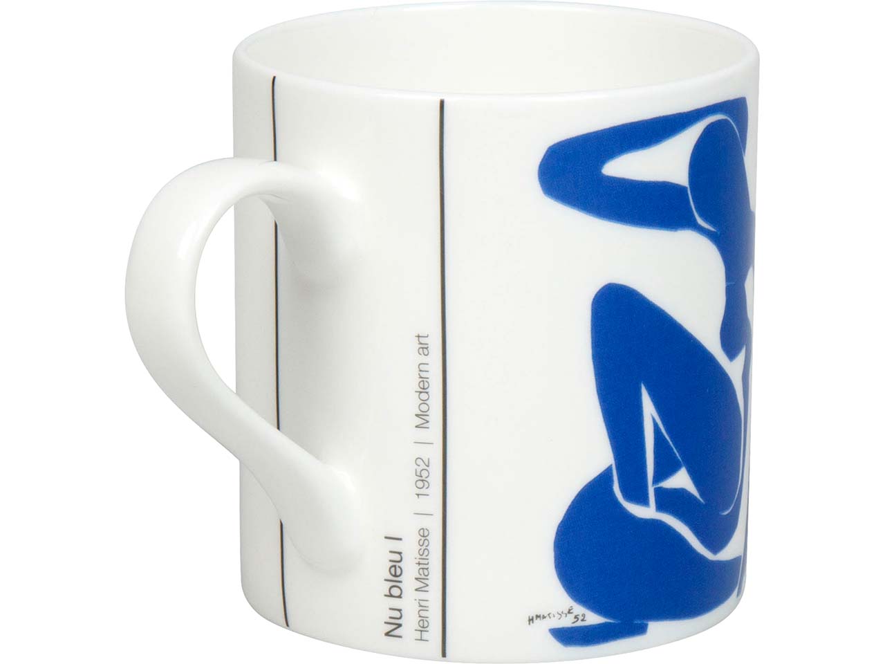 Anfang der 1950er Jahre entstand Henri Matisses „Nu bleu I“, einer von mehreren Gouacheschnitten, die weibliche Akte in abstrakter Form darstellen und wie Skulpturen wirken. Das wunderschöne Kunstwerk kann nun jeden Morgen mit dem Kaffee oder Tee genossen werden. Die in Deutschland hergestellte Tasse aus hochwertigen Bone China ist langlebig, für Spülmaschine und Mikrowelle geeignet und jedes Mal aufs Neue ein echter Blickfang. Mit einem Fassungsvermögen von 400 ml.