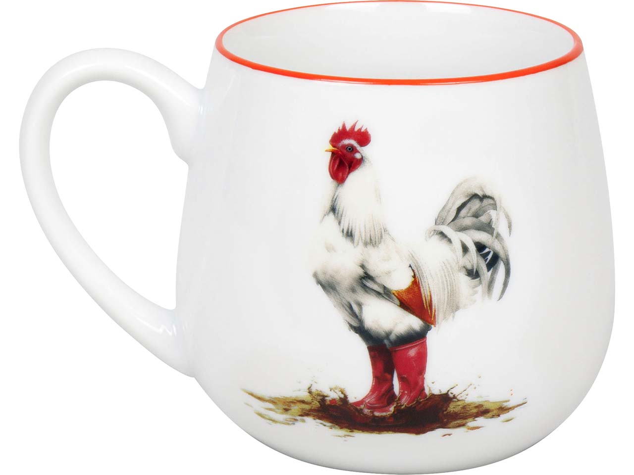 Dieser Hahn tapst mit seinen roten Gummistiefeln auf dem Kuschelbecher – und direkt in die Herzen von Jung und Alt! Das lustige Motiv bringt selbst Morgenmuffel zum Lächeln. Die Tasse aus Porzellan bietet viel Platz für Tee, Kaffee und Co. Der Mundrand ist farblich harmonisch zur Illustration gehalten. Mit seinem einmaligen Aussehen und seiner hohen Qualität ist der Becher ein Muss für alle Tier- und Bauernhoffans!
