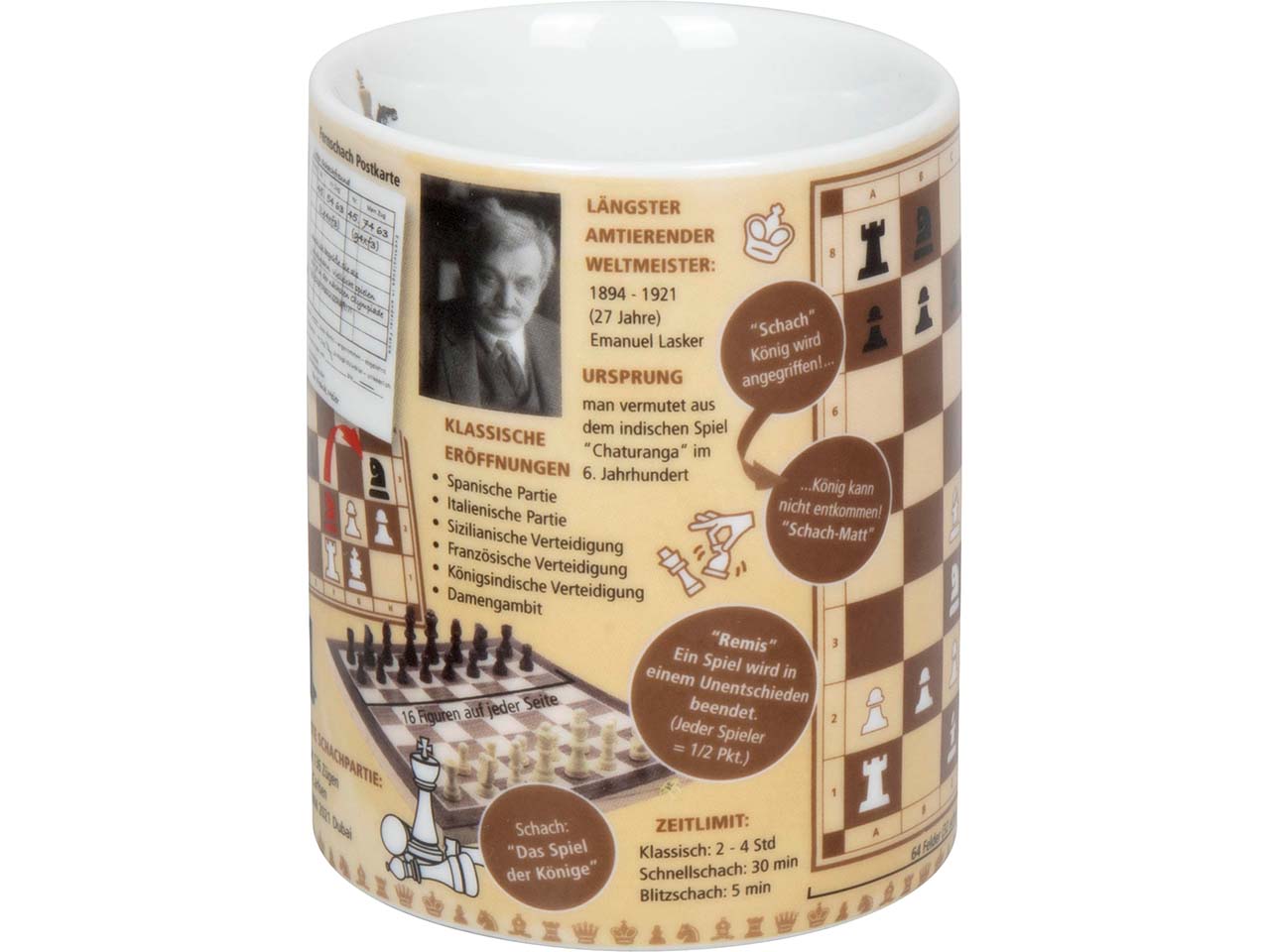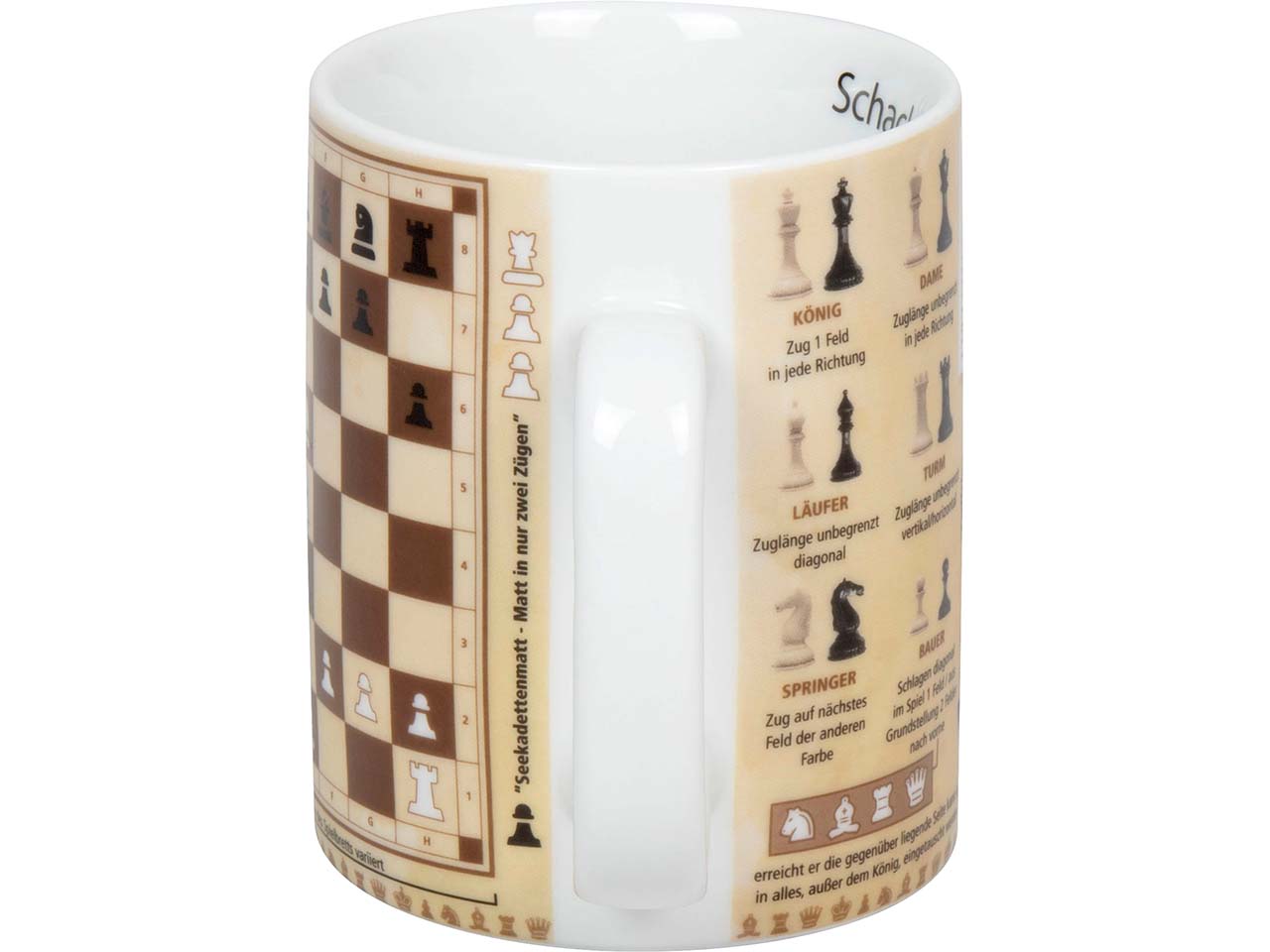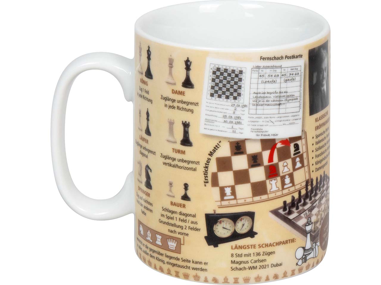 Darf es eine Partie Schach sein? Obwohl es eines der ältesten Spiele der Welt ist, fasziniert Schach noch heute Menschen jeden Alters. Es ist dafür bekannt, Kreativität sowie Logik- und Konzentrationsfähigkeit zu fördern. Jetzt kann man das königliche Spiel gleich morgens beim Kaffee genießen – oder einfach etwas fachsimpeln. Neben einem Schachbrett befinden sich hier auch spannende Fakten auf der spülmaschinen- und mikrowellengeeigneten Porzellantasse. Ideal für alle, die Schach lieben und als Geschenk!