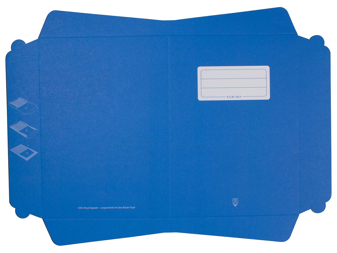Der Komima Heftumschlag besteht aus mit dem Blauen Engel ausgezeichneten Recyclingpapier, das eine hohe Grammatur von 160 g/m² hat. Der Umschlag schützt Bücher und Hefte im Format DIN A4 vor Verschmutzungen. Die verwendeten Druckfarben basieren auf nachwachsenden Rohstoffen. Design, Druck und Verarbeitung finden in der Nähe von Würzburg statt, wodurch lange Transportwege vermieden werden.