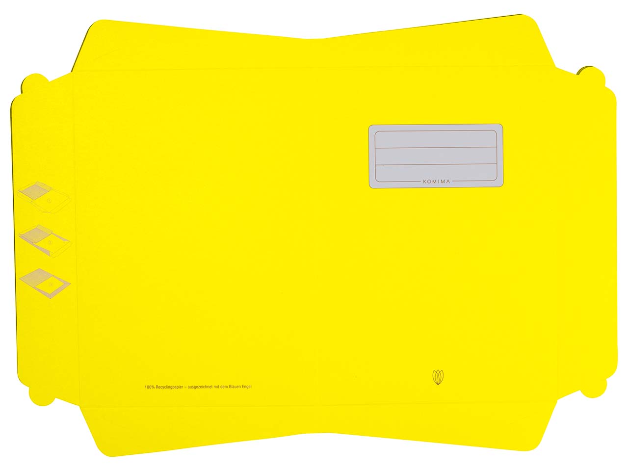 Der Komima Heftumschlag besteht aus mit dem Blauen Engel ausgezeichneten Recyclingpapier, das eine hohe Grammatur von 160 g/m² hat. Der Umschlag schützt Bücher und Hefte im Format DIN A5 vor Verschmutzungen. Die verwendeten Druckfarben basieren auf nachwachsenden Rohstoffen. Design, Druck und Verarbeitung finden in der Nähe von Würzburg statt, wodurch lange Transportwege vermieden werden.