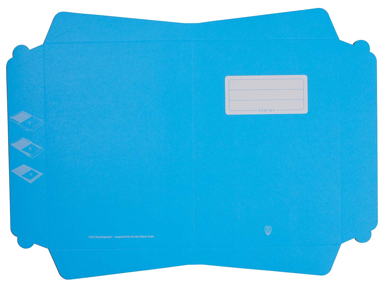 Der Komima Heftumschlag besteht aus mit dem Blauen Engel ausgezeichneten Recyclingpapier, das eine hohe Grammatur von 160 g/m² hat. Der Umschlag schützt Bücher und Hefte im Format DIN A4 vor Verschmutzungen. Die verwendeten Druckfarben basieren auf nachwachsenden Rohstoffen. Design, Druck und Verarbeitung finden in der Nähe von Würzburg statt, wodurch lange Transportwege vermieden werden.