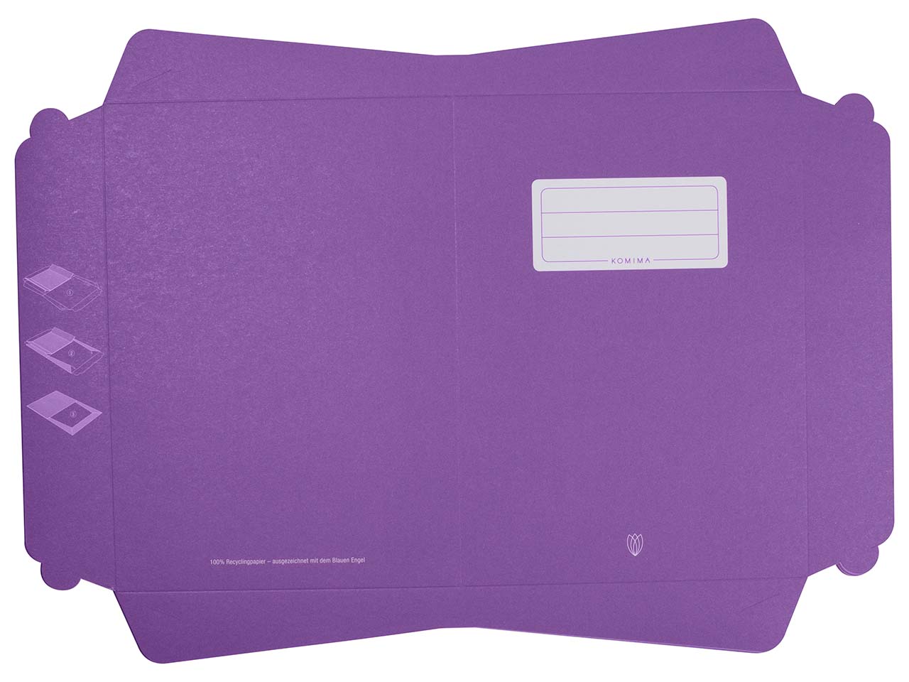 Der Komima Heftumschlag besteht aus mit dem Blauen Engel ausgezeichneten Recyclingpapier, das eine hohe Grammatur von 160 g/m² hat. Der Umschlag schützt Bücher und Hefte im Format DIN A5 vor Verschmutzungen. Die verwendeten Druckfarben basieren auf nachwachsenden Rohstoffen. Design, Druck und Verarbeitung finden in der Nähe von Würzburg statt, wodurch lange Transportwege vermieden werden.