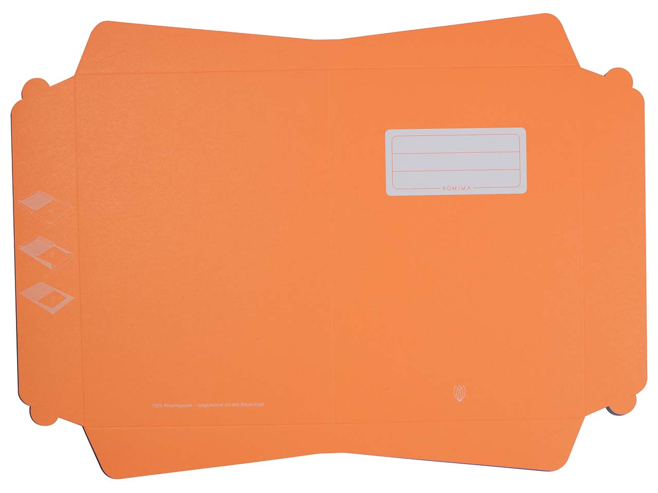 Der Komima Heftumschlag besteht aus mit dem Blauen Engel ausgezeichneten Recyclingpapier, das eine hohe Grammatur von 160 g/m² hat. Der Umschlag schützt Bücher und Hefte im Format DIN A5 vor Verschmutzungen. Die verwendeten Druckfarben basieren auf nachwachsenden Rohstoffen. Design, Druck und Verarbeitung finden in der Nähe von Würzburg statt, wodurch lange Transportwege vermieden werden.