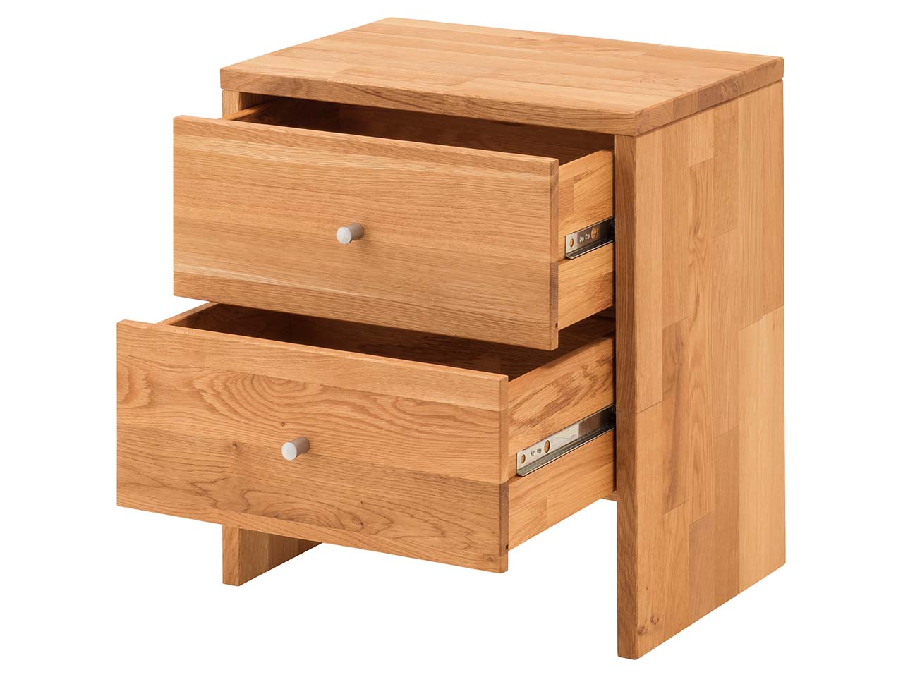 Die Kommode "Comma" ist geradlinig designt und fügt sich mit ihrer natürlichen Art ideal in Wohn- und Schlafräume oder den Eingangsbereich ein. Sie bietet mit den 2 Schubladen viel Platz zur Aufbewahrung von großen und kleinen Gegenständen, Kleidung und vieles mehr. Das hochwertig verarbeitete Möbelstück ist aus massiver Wildeiche gefertigt. B 50 x T 35 x H 56 cm.