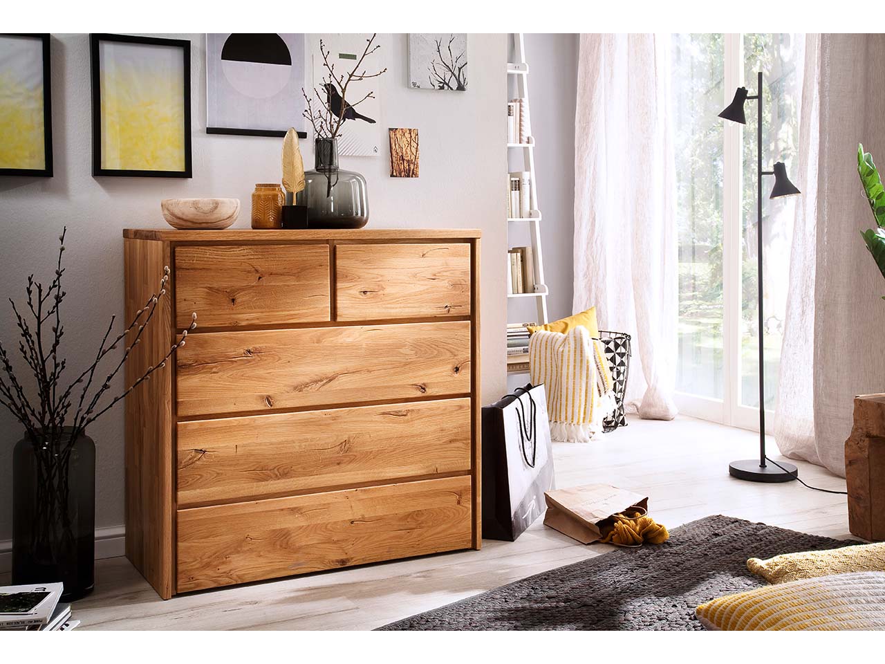 Kommode "Rödvig" aus Wildeiche, mit 5 Schubladen, 91 cm hoch