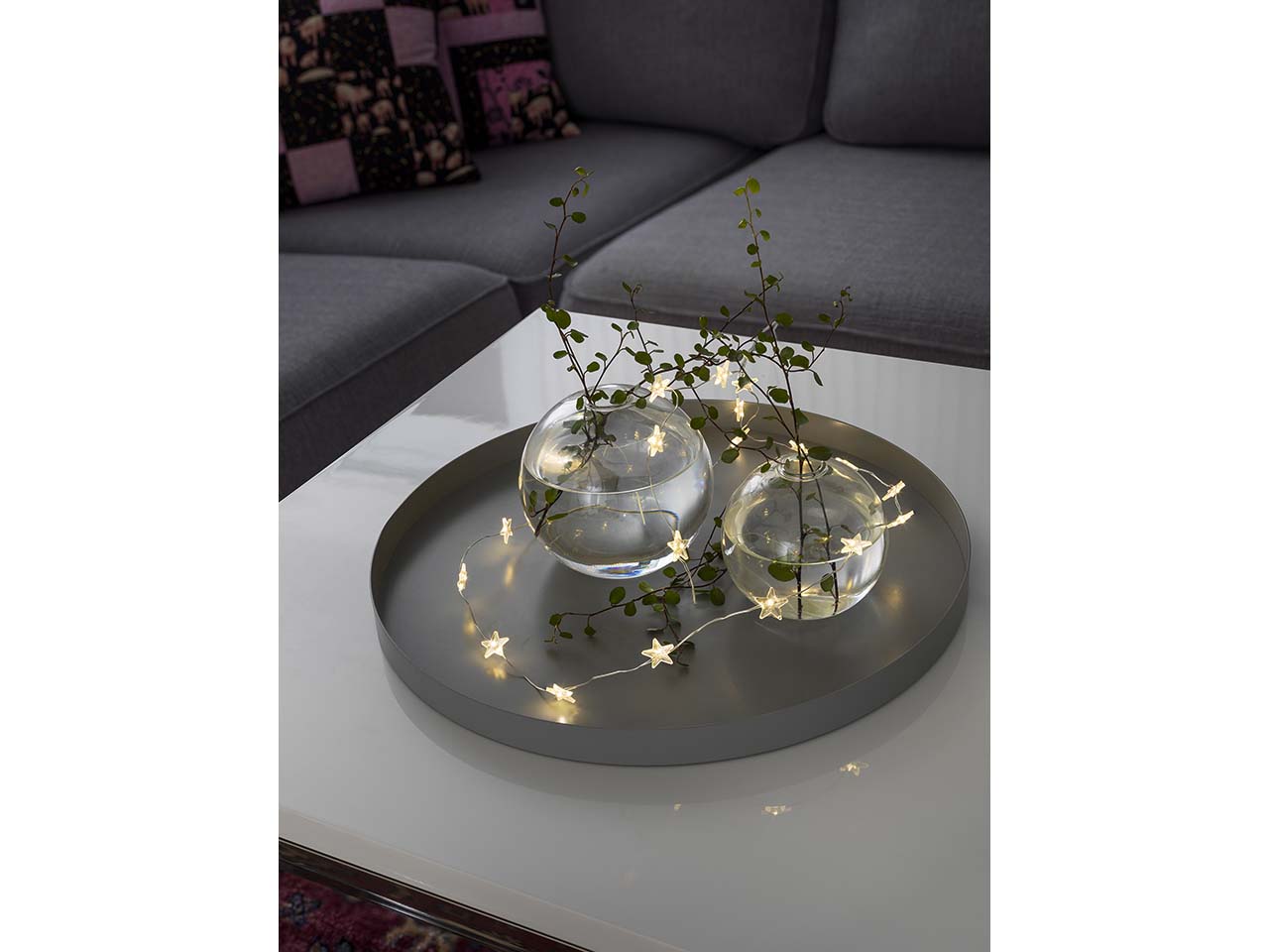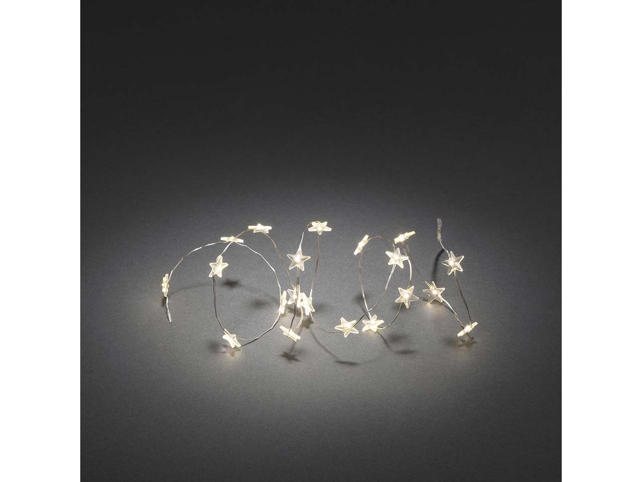 Hier gehen Sterne am Dekorationshimmel auf: Die Dekolichterkette mit Sternen funkelt in wunderschöner, warmweißer Lichtfarbe. Die filigran gearbeiteten Sterne machen sich fantastisch auf einem gedeckten Tisch, in einem Glasgefäß oder am Fenster. Wo sie auch verwendet wird, die Dekolichterkette zieht die Blicke auf sich. Da sie batteriebetrieben ist, kann sie ganz flexibel verwendet werden.
